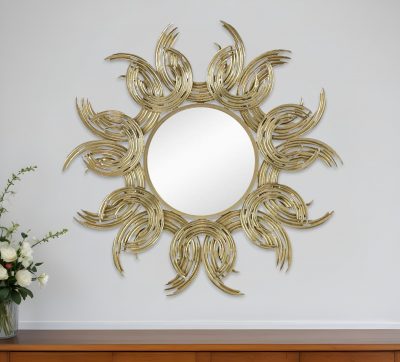 Homeroots – 37″ Gold Abstract Sunburst Iron Framed Accent Mirror