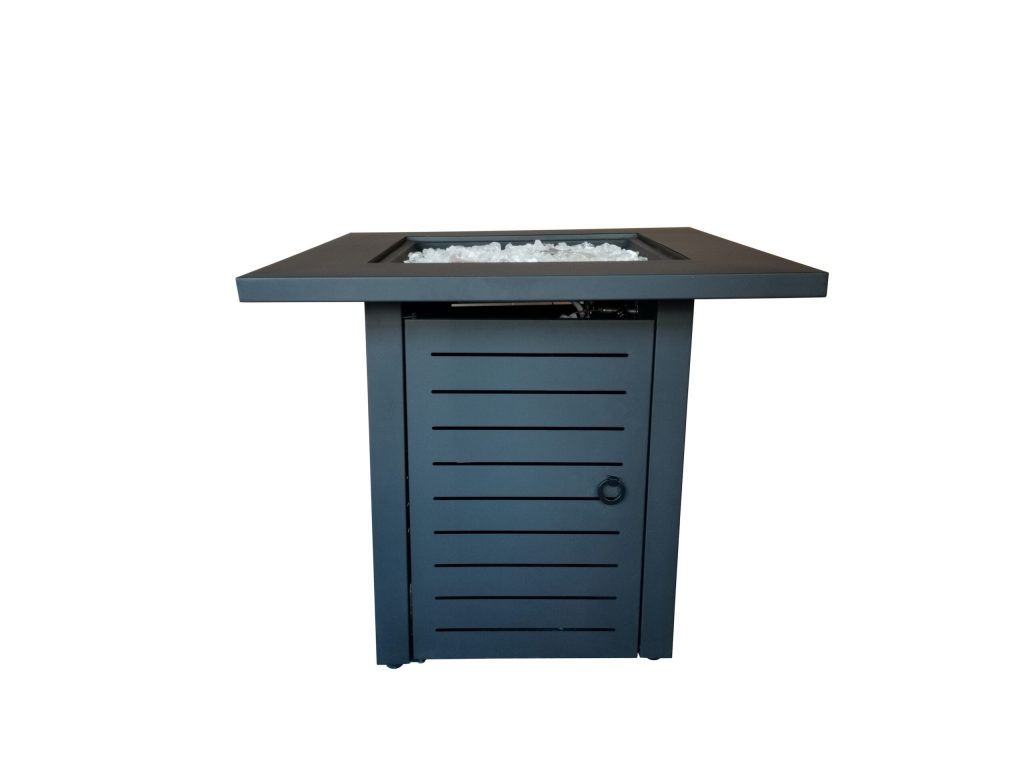 Stay warm and savor the moments with family and friends as you gather round the 28″ Brown Faux Rattan Design Square Propane Fire Pit with Glass Bead Rocks . This 50,000 BTU metal and faux rattan fire pit features a wide plank style tabletop design and faux rattan panels on all four sides and glass bead fillers. The finish in shades of brown gives a warm and authentic look. When not in use, the lid fits securely to convert the pit into and additional side table for your backyard. This is a great way to gain extra serving or eating space when you don’t have a fire going. Well made and good looking, this multi function fire pit is a great choice to help transform your outdoor space into a beautiful oasis. 24″ x 28.5″ x 28.5″