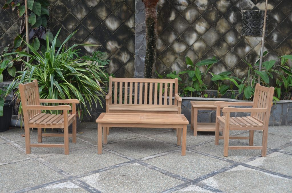 The perfect furniture collection for the yard and outdoors, this conversation set arrives with the Classic 2-Seater Bench, two Classic Armchairs, the Bahama Rectangular Coffee Table and One Bahama Square Side Table 2-tier. Constructed from premium grade teak wood that’s unfinished and sanded smooth, its the perfect material for weathering the outdoors, with a touch and feel thats smooth and authentic. Careful design changes have been made to the bench and chairs to ensure an excellent and comfortable back support. Add Sunbrella All-Weather Fabrics and Cushions for even more comfort. Cushions sold separately.