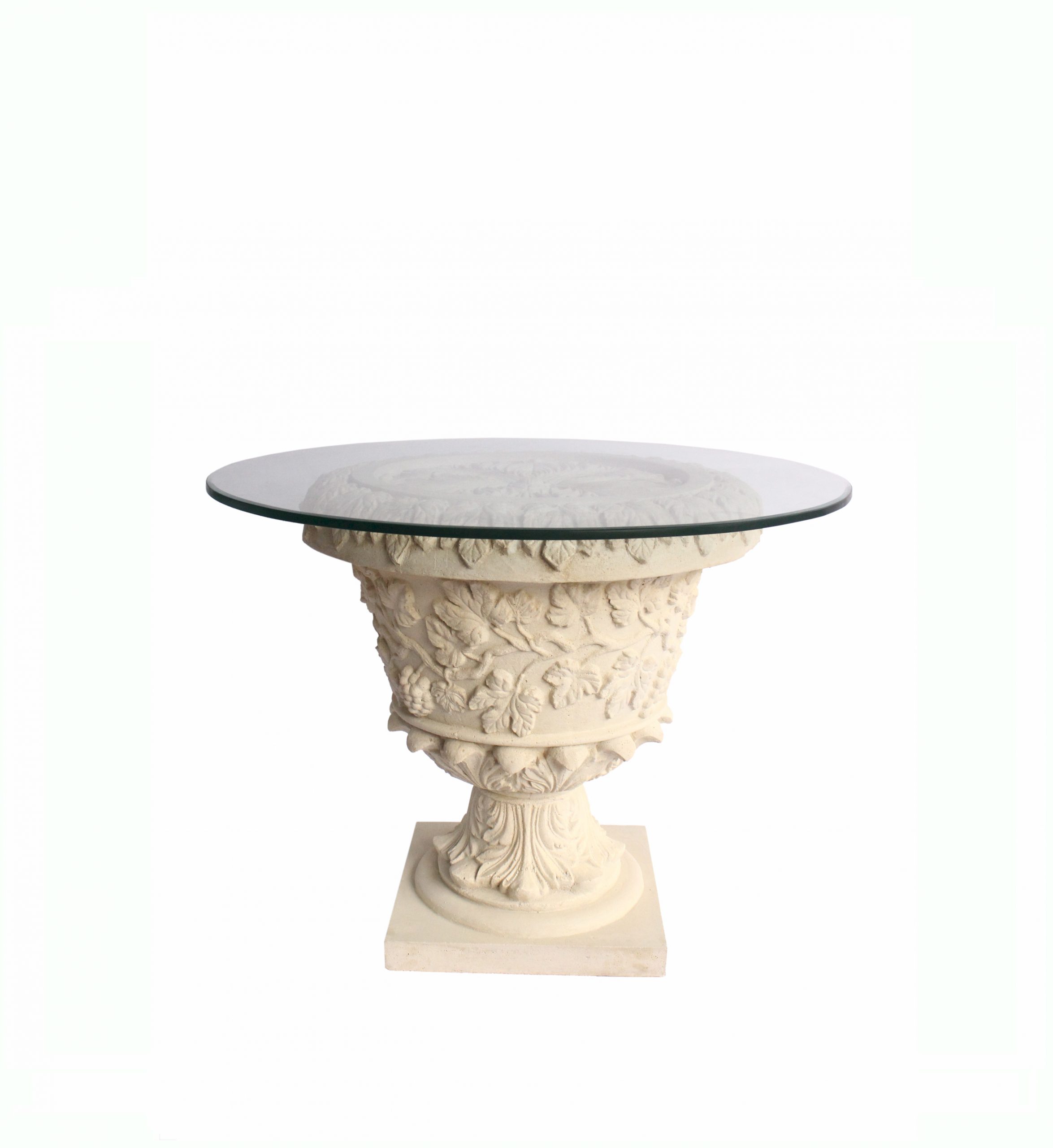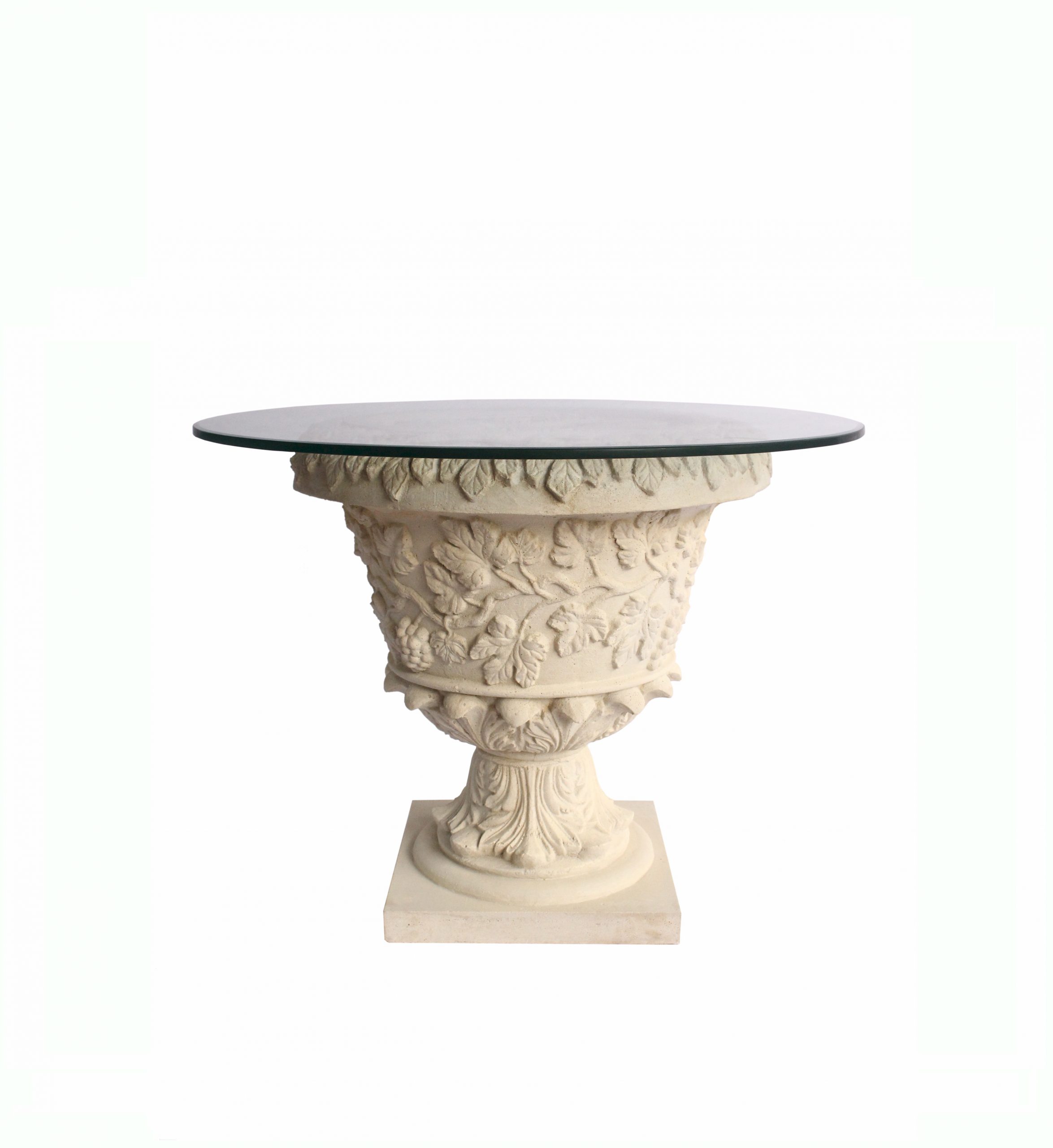 With ornate dimensional leaf details, the French 36″ Round Entry Hallway Table celebrates the grand sophistication of classical antiquity. The solid square base provides stability to the design. This table is made of cast limestone for quality built that will last a lifetime.