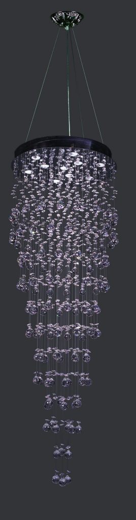 The Andromeda 10-light pendant expands the vertical column to 71 inches with a 3-foot chain for flexible installation. The stacked faceted Crystalique-Plus crystal spheres remain the focal point, creating a sculpture of light that works over dining tables, in entry halls, or suspended in any space where vertical emphasis enhances the design. Ten 50W GU10 bulbs ensure generous illumination while the chrome finish maintains contemporary clean-line aesthetics. Chain adjustment accommodates different ceiling heights.