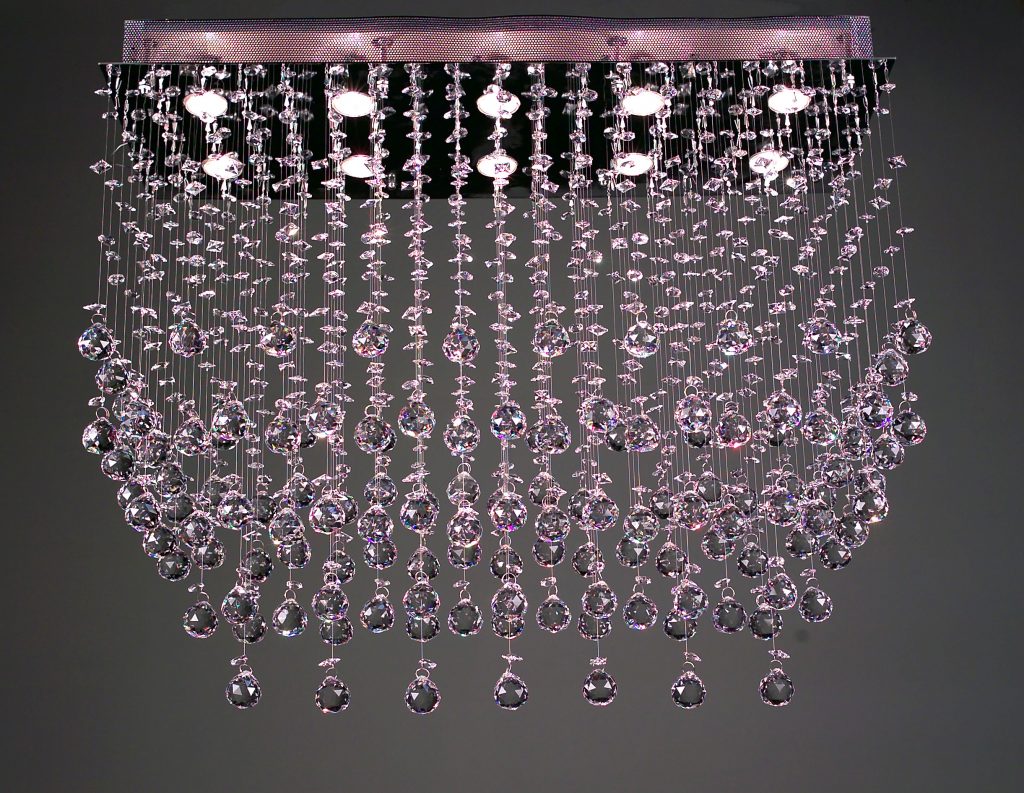 The Andromeda 10-light linear chandelier spans 14 inches wide and 36 inches long with 30 inches of vertical height, solving the challenge of lighting rectangular spaces with contemporary crystal sophistication. Ten 50W GU10 bulbs distribute along the length, while the stacked faceted Crystalique-Plus spheres create a column of geometric beauty. Chrome finish maintains clean contemporary aesthetic. The flush-mount configuration works in rooms with modest ceiling height.