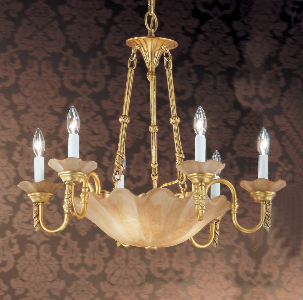 Spanish made sold brass cast frames with lightly antiqued genuine alabaster stone shades carved into a scallop shell pattern.
