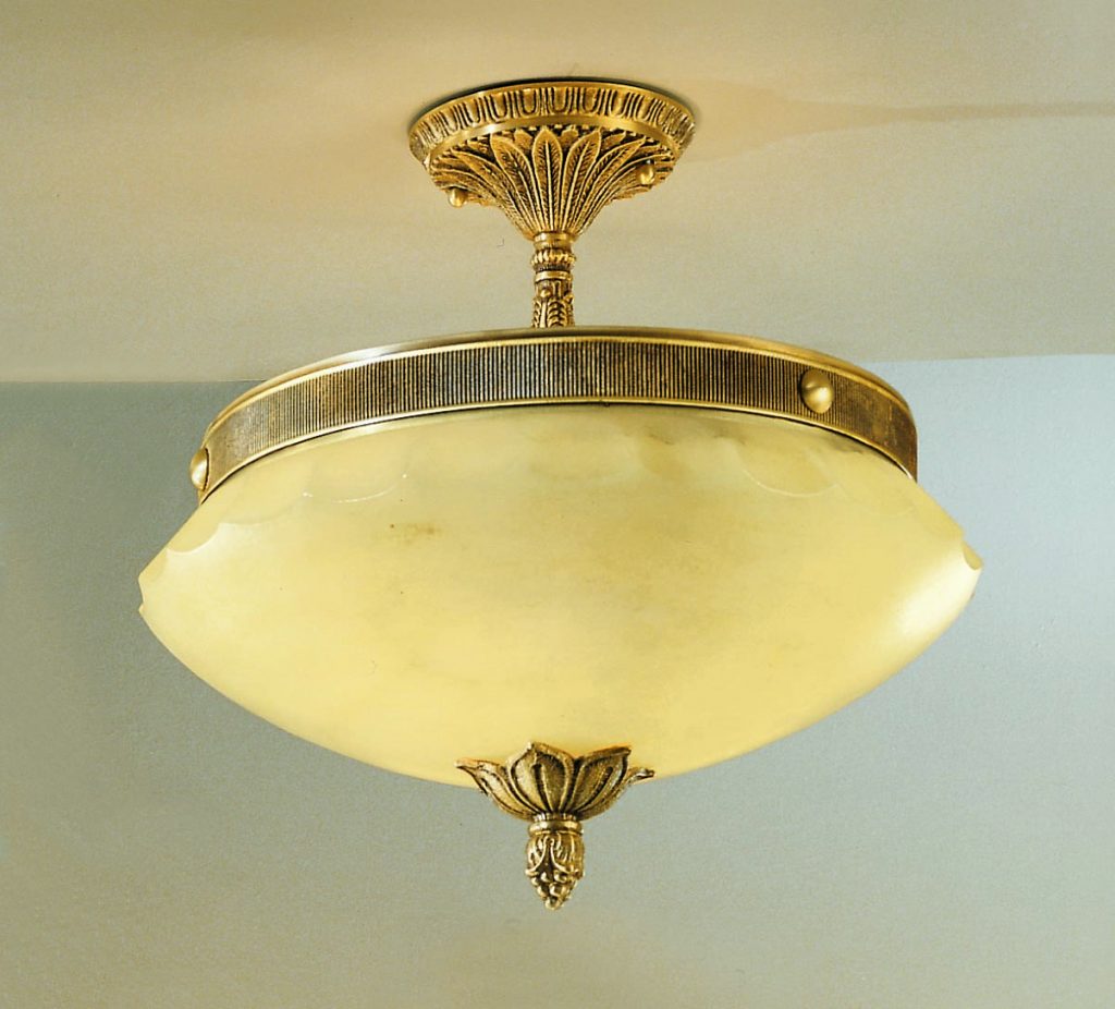 This collection represents bold beauty and graceful symmetry. Ornate solid brass castings are attached directly to the sculptured cream alabaster bowls. Light from within gives texture and character to the the chisled alabaster center bowls. Finished in rich Satin Bronze with Brown Patina umber (SBB).