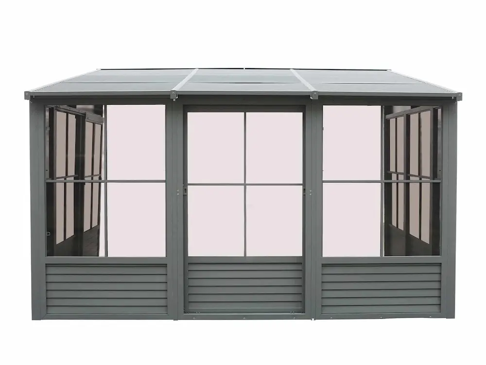 Extend the pleasure of your outdoor space with our Florence solarium. This extension to your home will provide the space to gather all your loved ones for an evening of dining and relaxing, or it can be used as the perfect shelter for your spa. This beautiful addition to your outdoor living space will shelter you from the elements for years to come while adding value to your property. This unit can be left in place all year round, saving you the hassle of setting up and taking down at the end of the season. The Florence solarium is constructed from extruded aluminum and features elegant galvanized steel roof panels, two sliding doors and 5-position ventilation panels. This solarium has been carefully designed to withstand exposure to rain, snow and UV rays.
