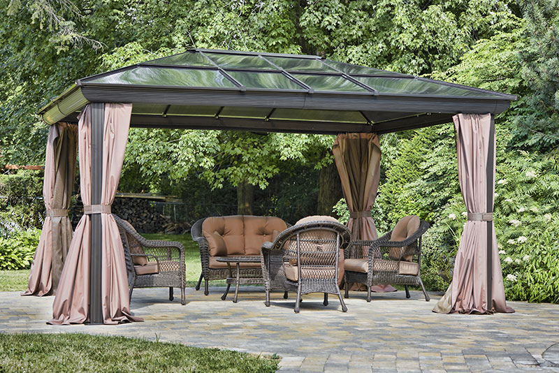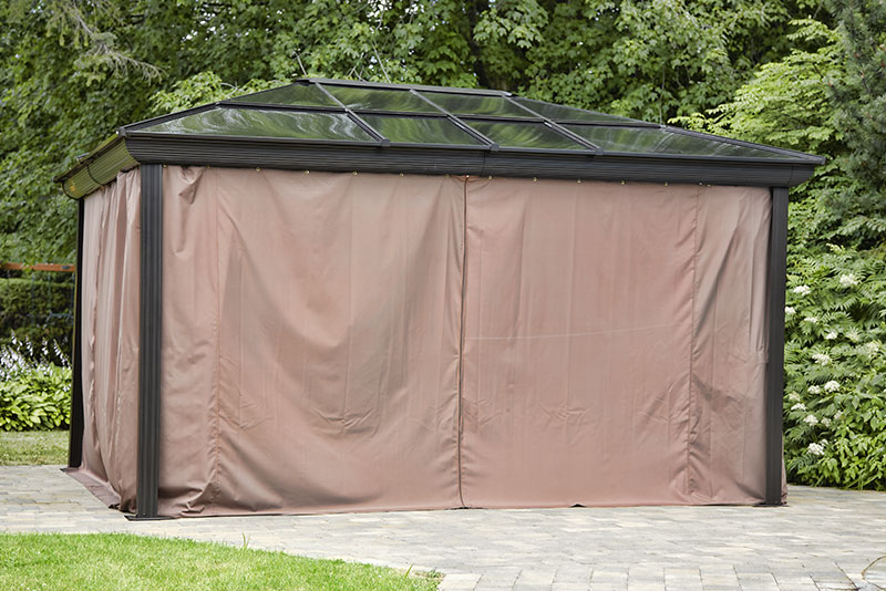 Relax in the shade under this Venus gazebo. Use mosquito curtains to keep insects out. This gazebo is made of extruded aluminum and reinforced polycarbonate roof, it allows sunlight to penetrate inside without letting ultraviolet rays reach you. It can be left in place all year round, thus avoiding assembly and disassembly at the end of the season. The Venus gazebo is a nice blend of classic and modern design. It can match any house without any problem. The Venus gazebo will host your most beautiful evenings with friends.
