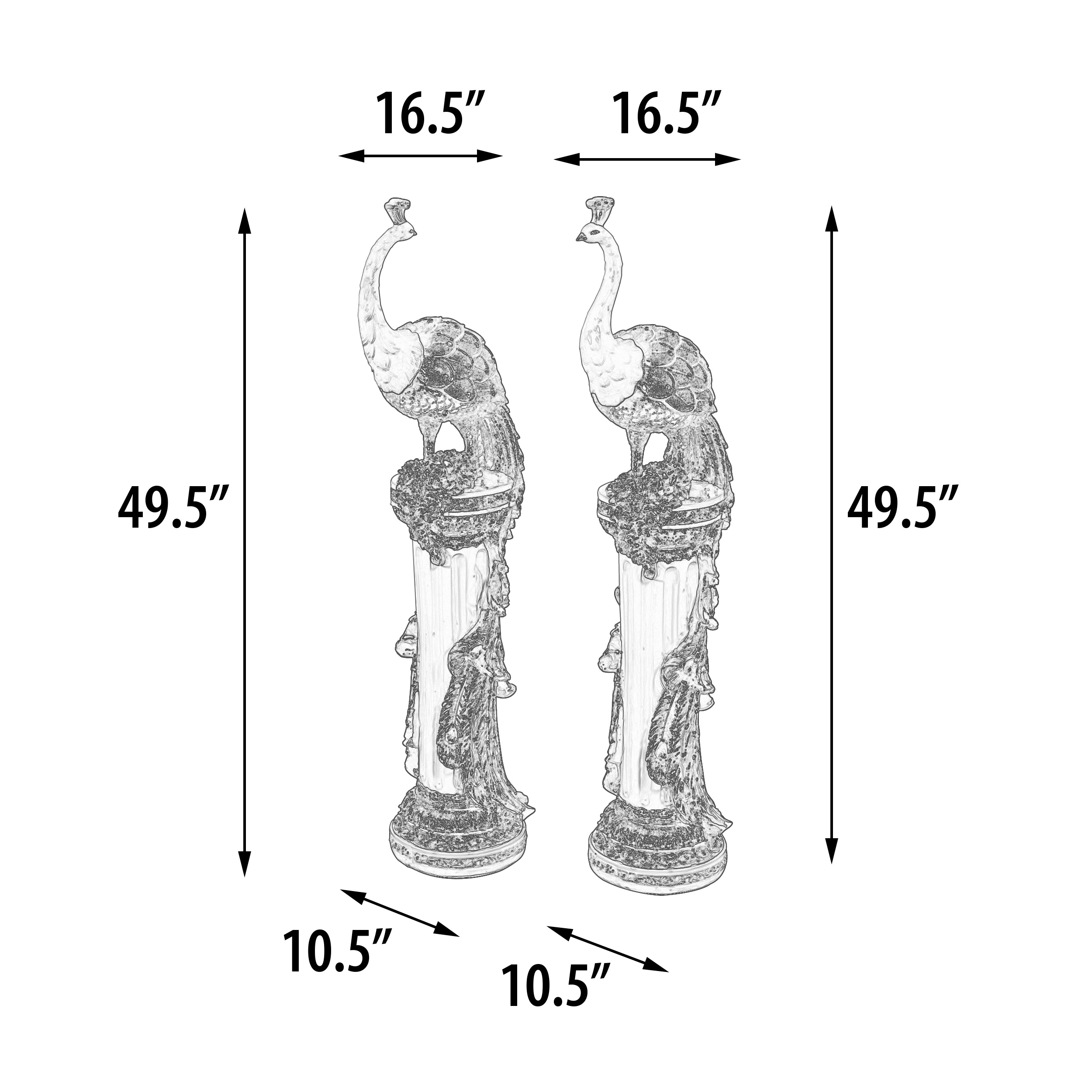 The European Elegance Golden Emerald Peacocks on Pedestal Set of 2 is a stunning addition to any decor. These decorative statuary feature peacocks perched atop Corinthian-style pedestals adorned with French White and green rhinestone crystals. Their elegant and captivating design makes them easy to decorate with, adding a touch of sophistication to any space. The fine cast details showcase the intricate craftsmanship of these pieces. Elevate your decor with the allure of European elegance and let these exquisite peacocks on pedestals become charming focal points that bring a sense of grandeur and beauty to your home or office.