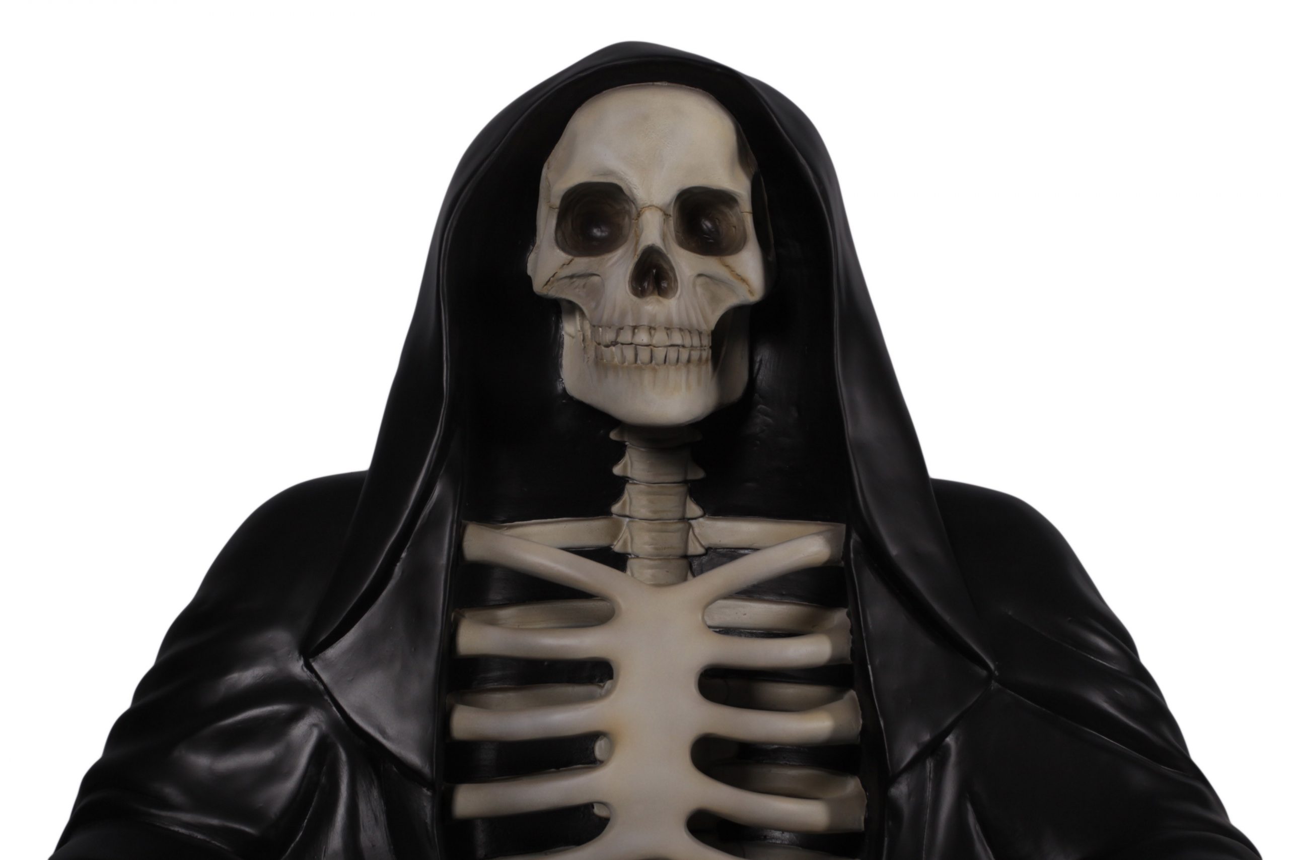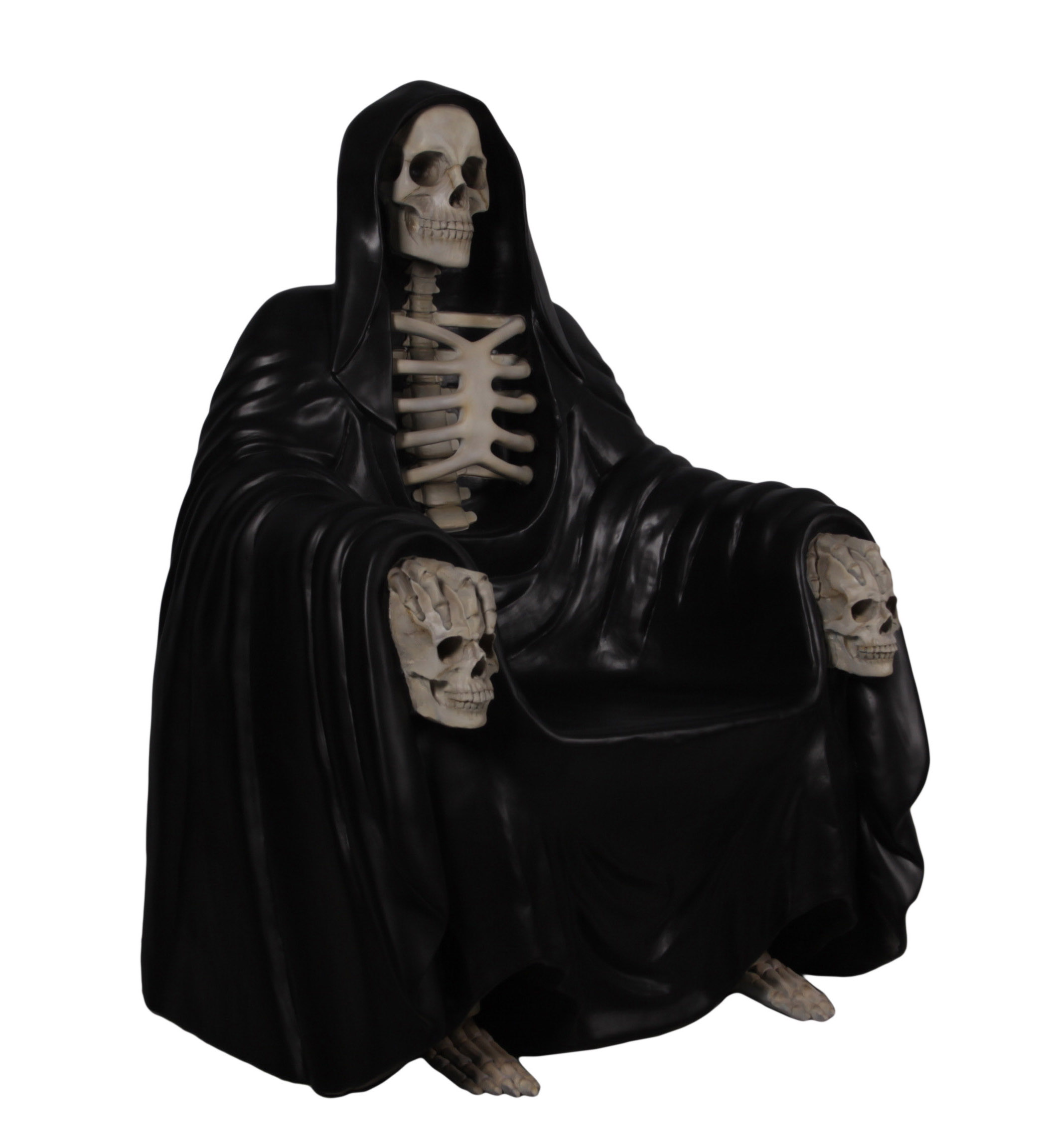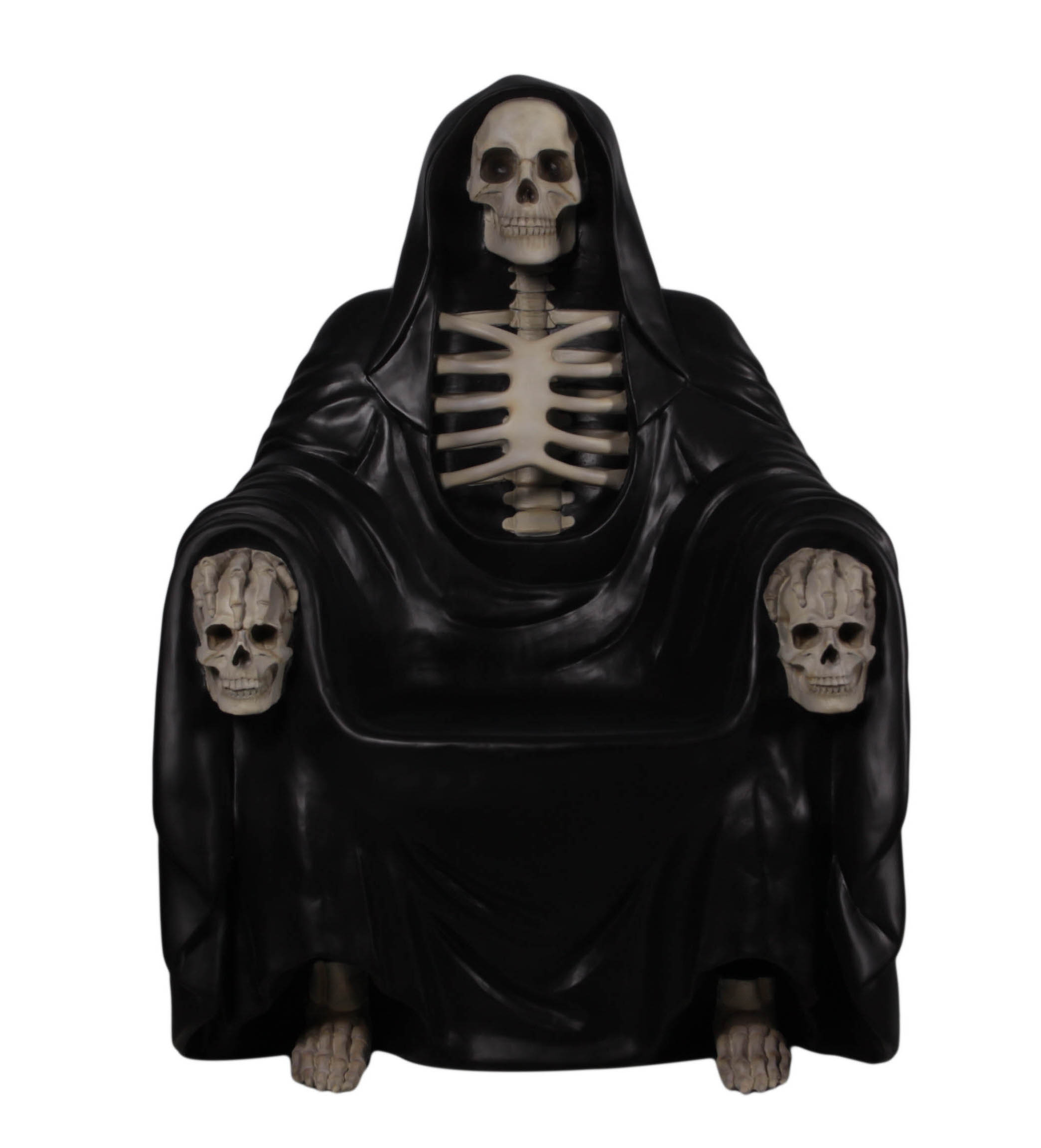 A new creation from whimsical treasures, the king of ghouls, The Grim Reaper Throne Chair will create the ultimate Halloween prop for a big kid at heart. Handcrafted by artists from the theme builder company.