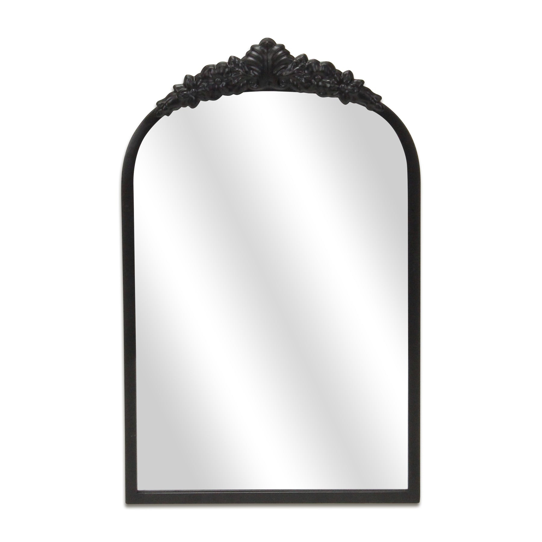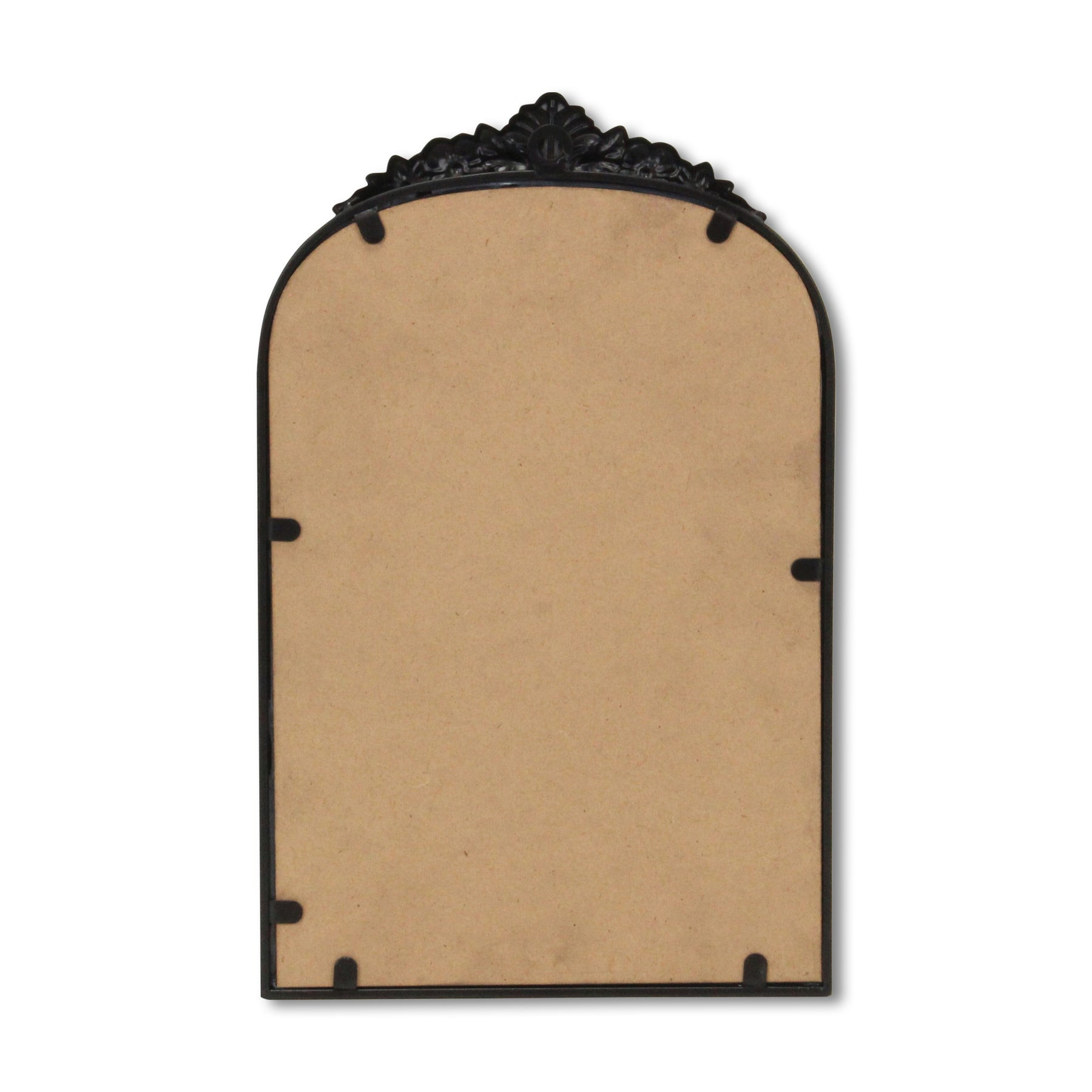Beautify your space with this 16-inch black metal arch accent mirror. Framed with metal in a black finish, this mirror will bring practical application and fashionable design to your space, adding some traditional Victorian flair to your decor. Features quality craftsmanship in every facet that ensures durability and long-lasting wear. Add this exceptional quality mirror to your space for a beautiful reflection and a bit of elevated style. 15.75-inch h x 9.75-inch w x 1-inch d.