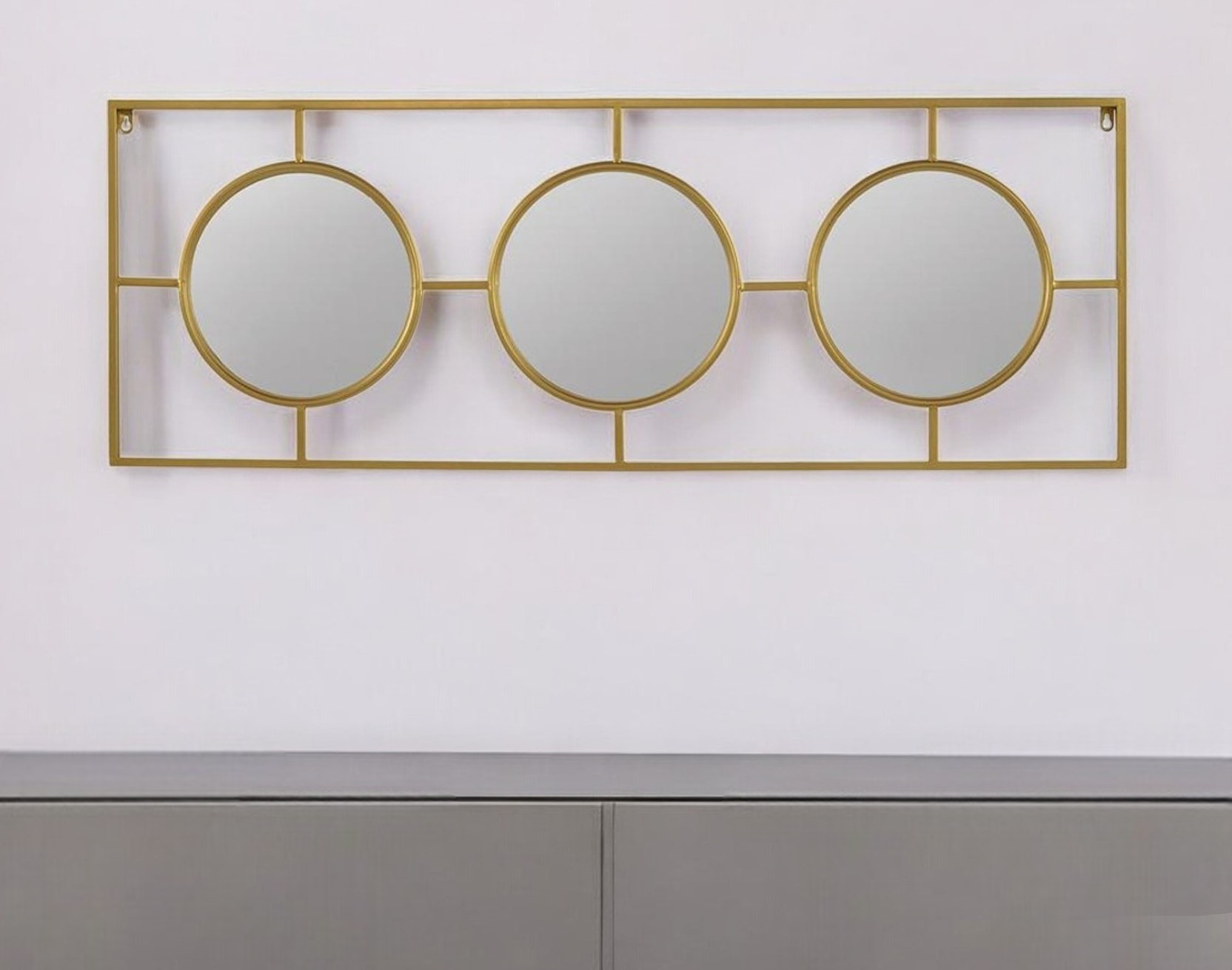 Beautify your space with an ornament that’s original and unique at the same time with this 16-inch gold iron framed accent mirror. Inside the frame there is a rectangle shaped mirror which will open up any space you hang this piece in. This frame works nicely with the full-bodied mirror in the middle. Due to its high quality construction, it will last a lifetime. This beautiful mirror will add brightness into any room your choose put this mirror in. 15.7-inch H x 43.3-inch W x 0.8-inch D