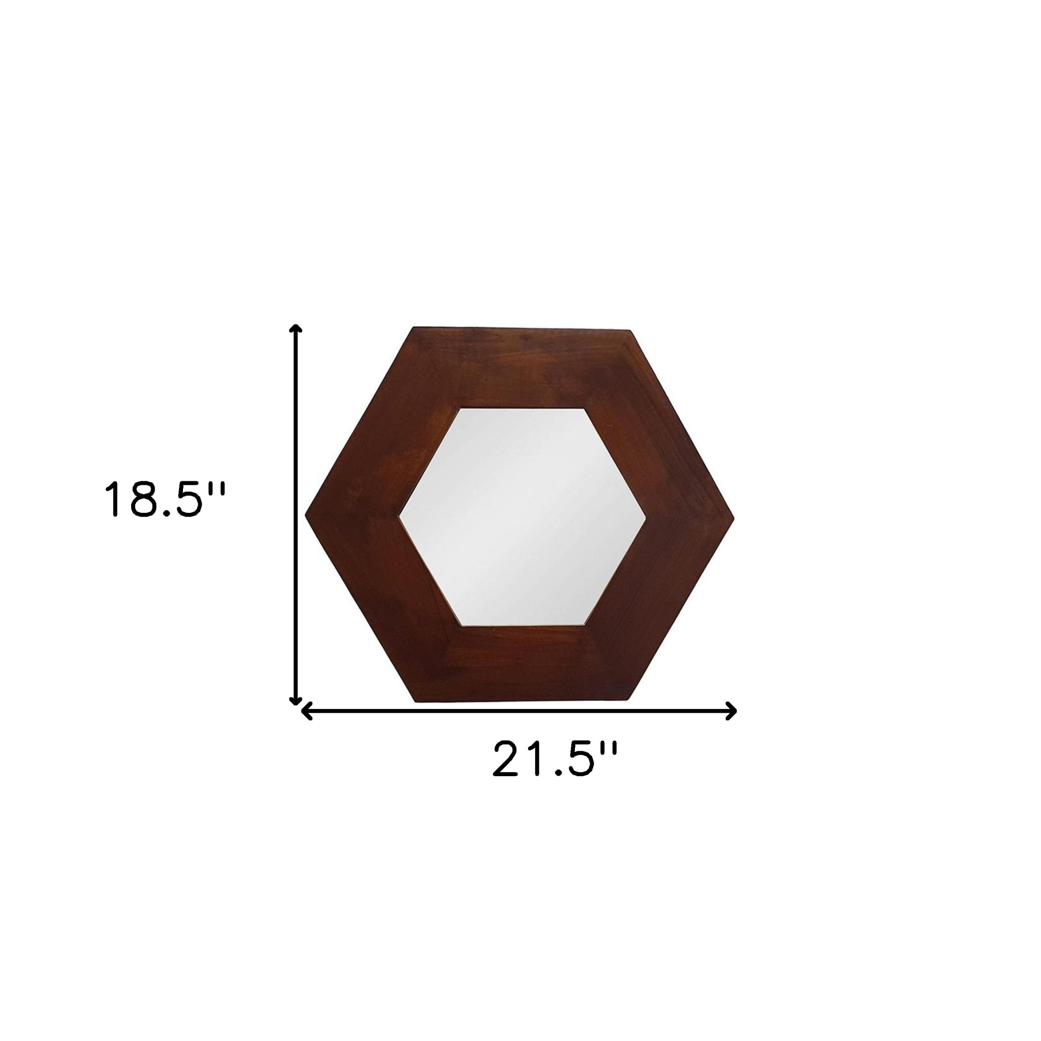 If you want to add some brightness to your living space, the 19-inch dark brown hexagon solid wood framed accent mirror is perfect for you. Inside the wide solid teak wood frame there is a hexagon shaped mirror which will open up any space you hang this piece in. Its traditional style makes this the perfect versatile accent piece for most any decor. This unique mirror will look great as part of your existing decor or you can use it as a statement piece anywhere in your home. 18.5-inch H x 21.5-inch W x 0.7-inch D