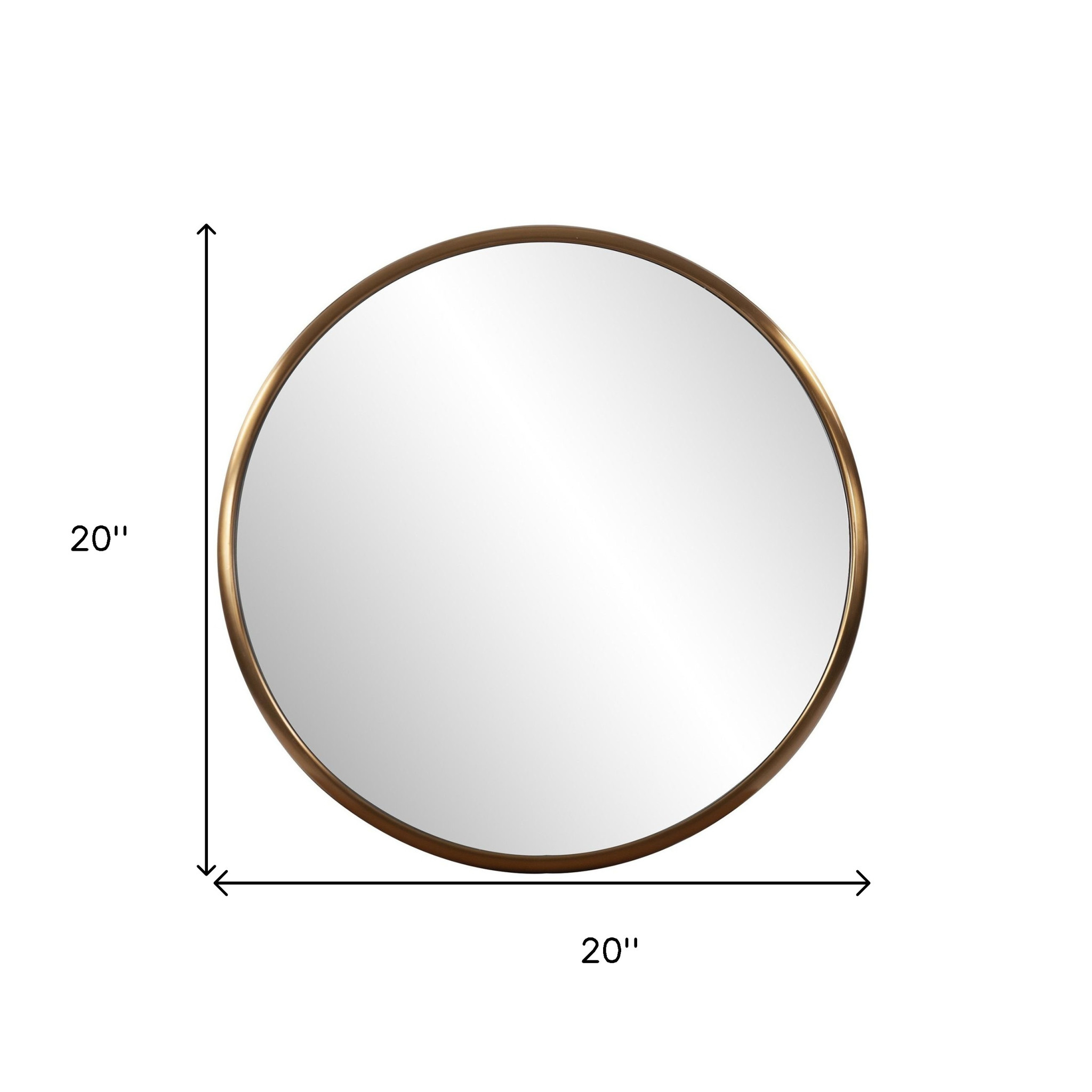 Inspired by a minimalist industrial aesthetic, the Antiqued Brushed Brass Round Wall Mirror is a distinguished focal point for your entryway, hallway, bathroom, or industrial loft. Made from high-quality stainless steel in a unique brushed brass finish, this stylish mirror will blend in seamlessly with your home decor and enhance its design sensibility. A well made, sturdy great wall mirror that is updated, classic, and not fussy. 20-inch H x 20-inch W x 1-inch D