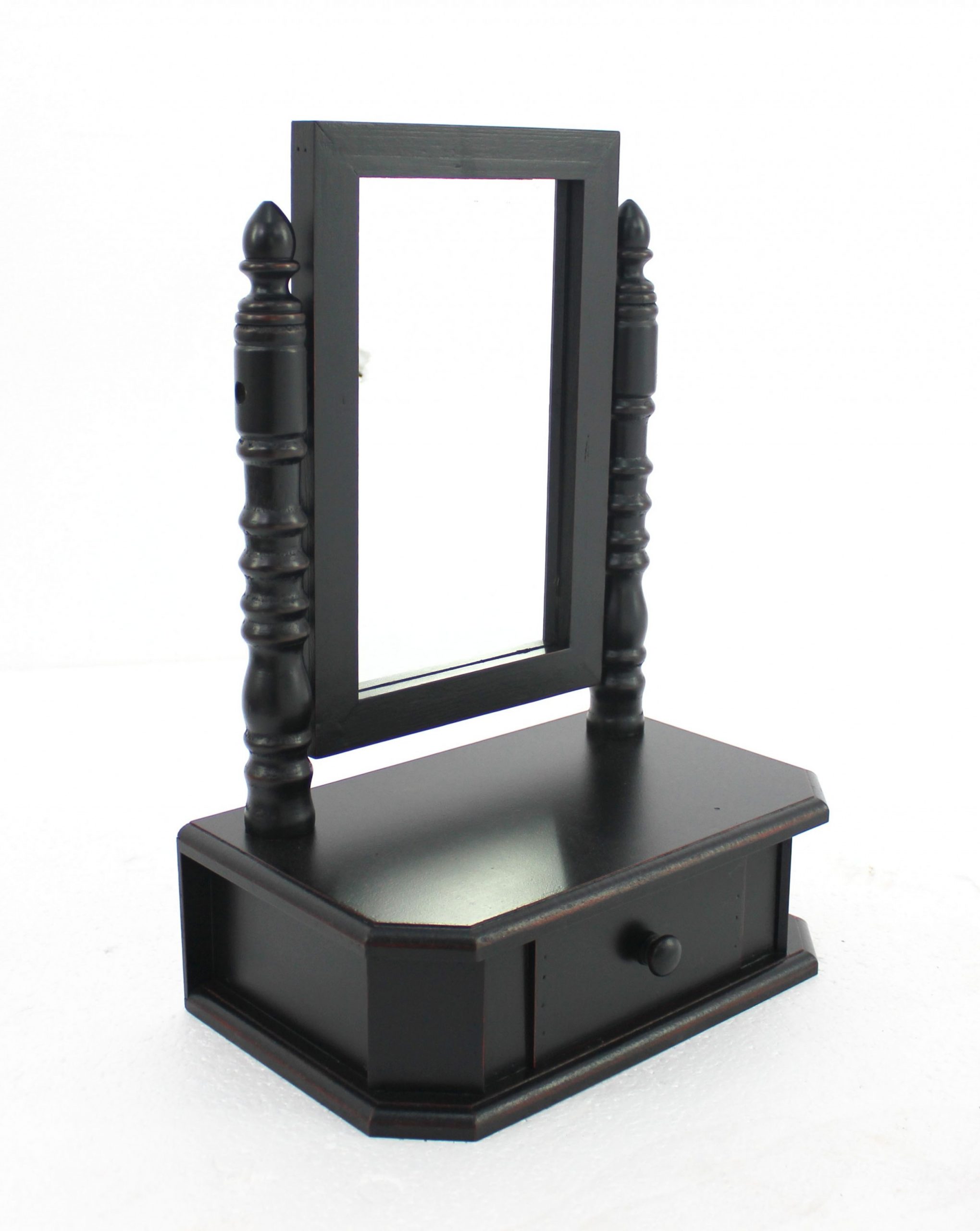 Every beauty enthusiast will absolutely adore this 20-inch black wood framed freestanding makeup shaving tabletop mirror. Framed with wood, this mirror will bring practical application and fashionable design to your space, adding some modern flair to your decor. Features quality craftsmanship in every facet that ensures durability and long-lasting wear. This mirror will be a great addition to your bedroom, bathroom or desk. Produced with premium quality glass for a beautiful reflection, this mirror will provide an exceptional visual experience. 20.00-inch h x 8.50-inch w x 14.00-inch d.