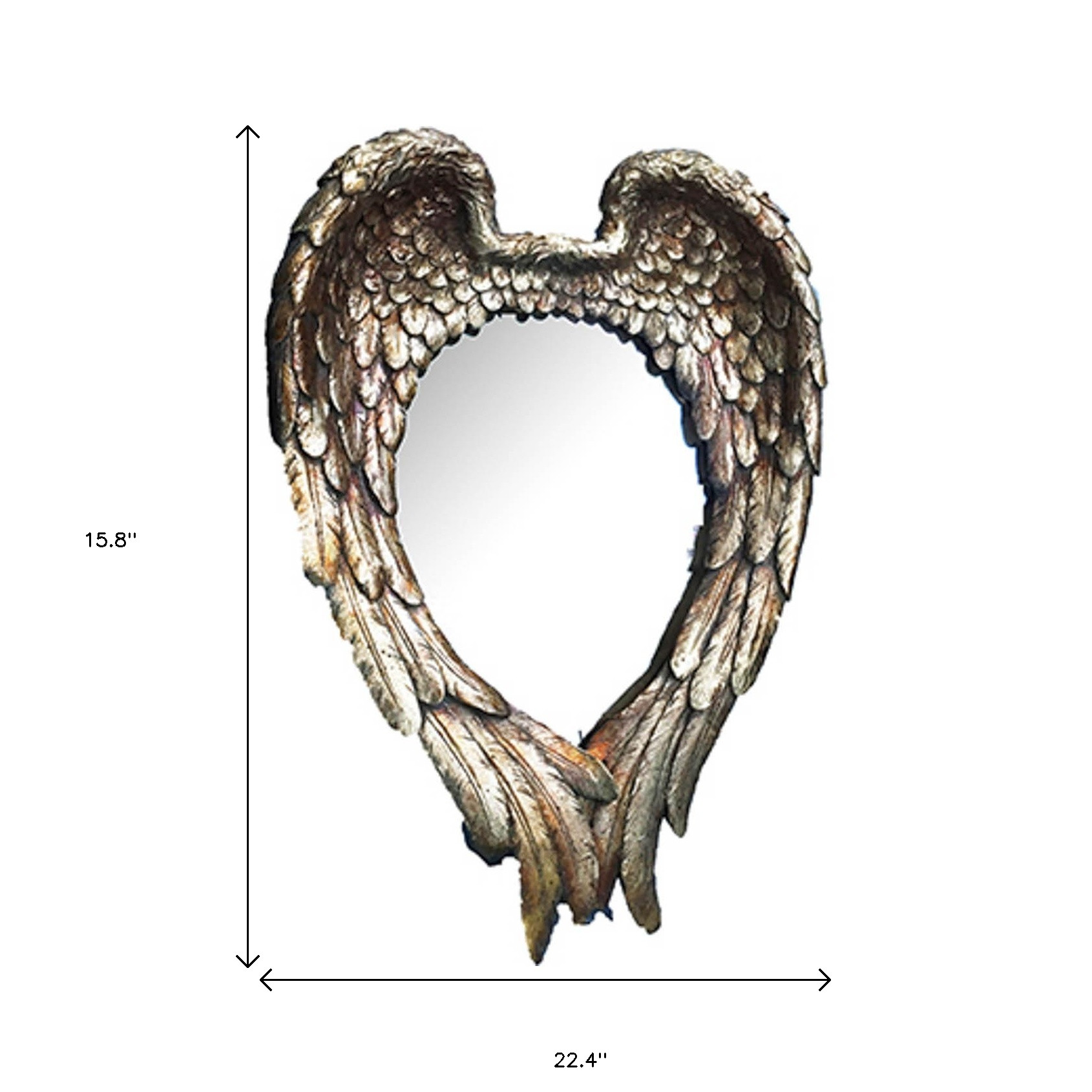 If you want to add some brightness to your living space, the 16-inch antiqued gold heart resin framed accent mirror is perfect for you. The unique frame is crafted from resin in a gold finish and creates a heart shape that represents a pair of angel’s wings surrounding the glass. This mirror can fit perfectly in any space and give that space a distinctive look. 22.4-inch h x 15.8-inch w x 3.4-inch d.
