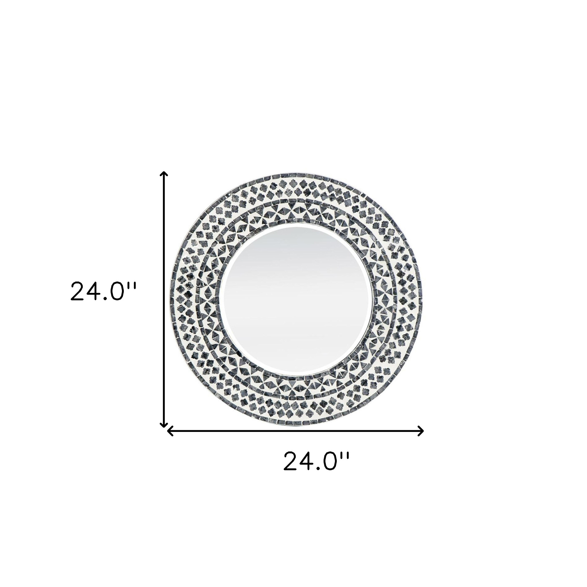 If you want to add some brightness to your living space, the 24-inch black and white round wood and shell framed accent mirror is perfect for you. Framed with manufactured wood and shell, this mirror will bring practical application and fashionable design to your space, adding some modern flair to your decor. This mirror will be a great useful addition to your home but will also help elevate the space in the room. Produced with premium quality glass for a beautiful reflection, this mirror will provide an exceptional visual experience. 24-inch h x 24-inch w x 0.8-inch d.