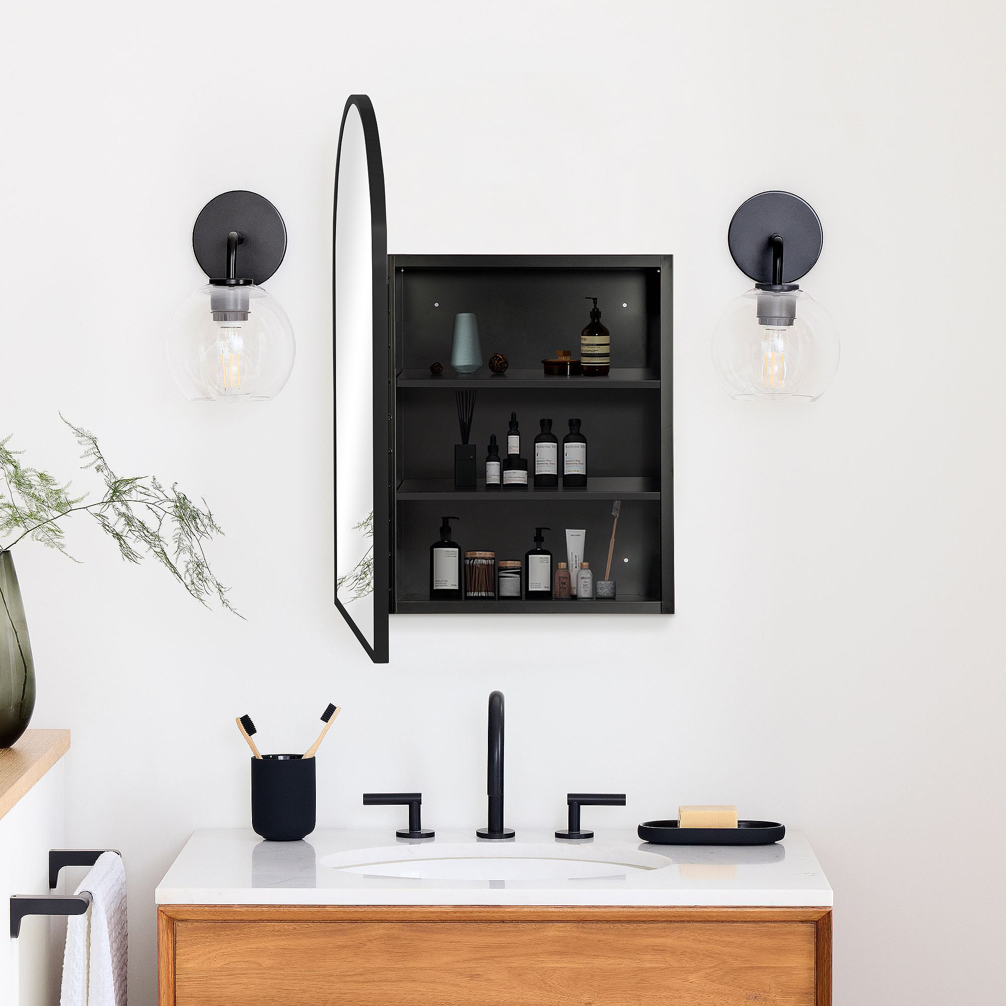 This 24-inch black arch metal framed mirror set will help you elevate and brighten up any space in your home. An antiqued and distressed mirror finish gives this piece lots of vintage charm. The frame of these mirrors is made from metal and has an elegant matte black color to it. This arch shaped mirror will open up any space you put in piece in. This mirror makes any space glow with its fantastic frame. Its casual style makes this mirror a favorite for bringing some flair to your decor. You can use these mirrors grouped together in different shapes or you can break them up and use them around your home. This set of unique mirrors will look great as part of your existing decor or you can use it as a statement piece anywhere in your home. 23.93-inch H x 35.76-inch W x 4.91-inch D