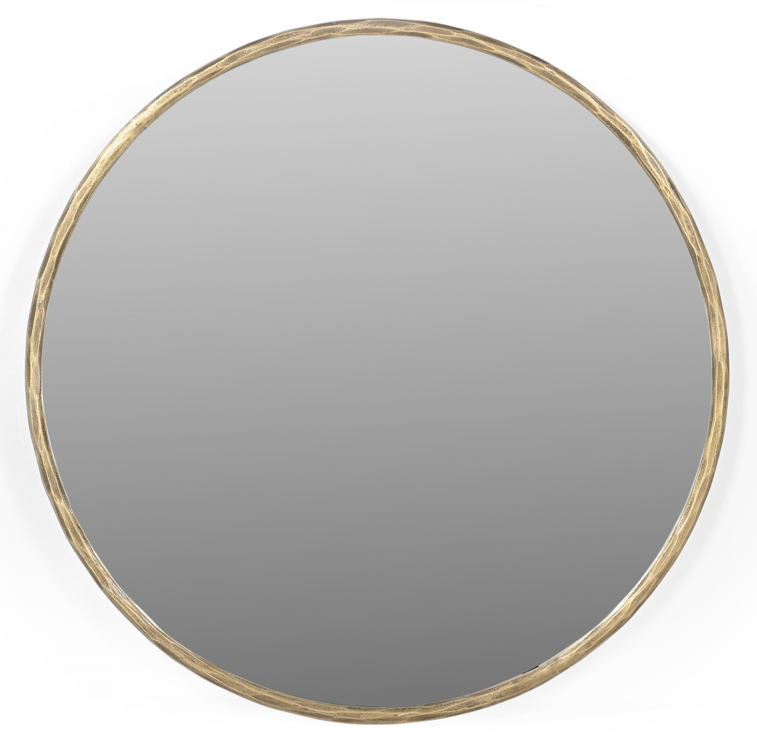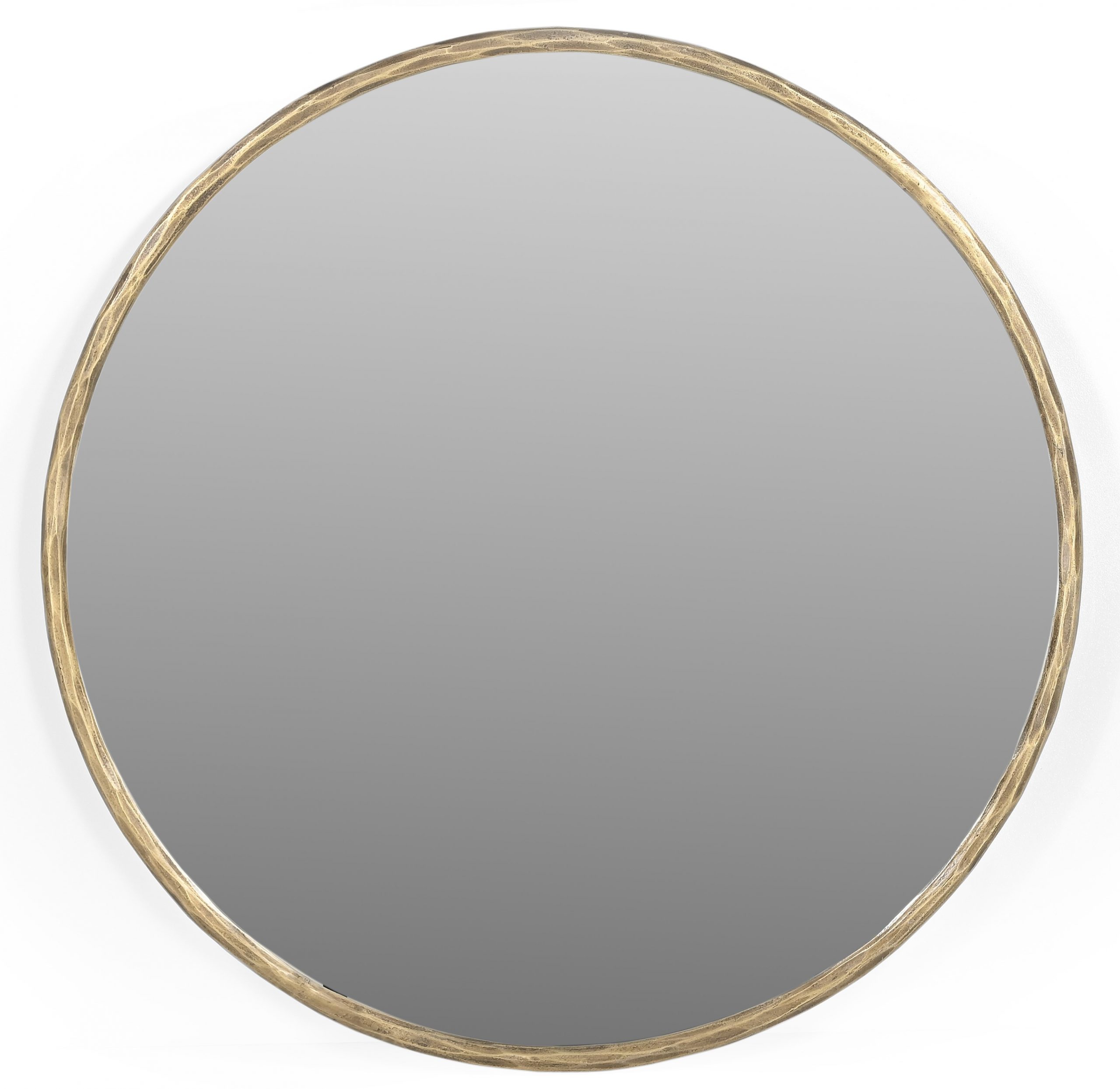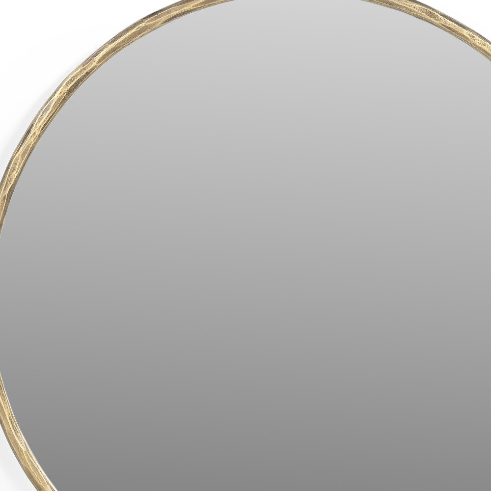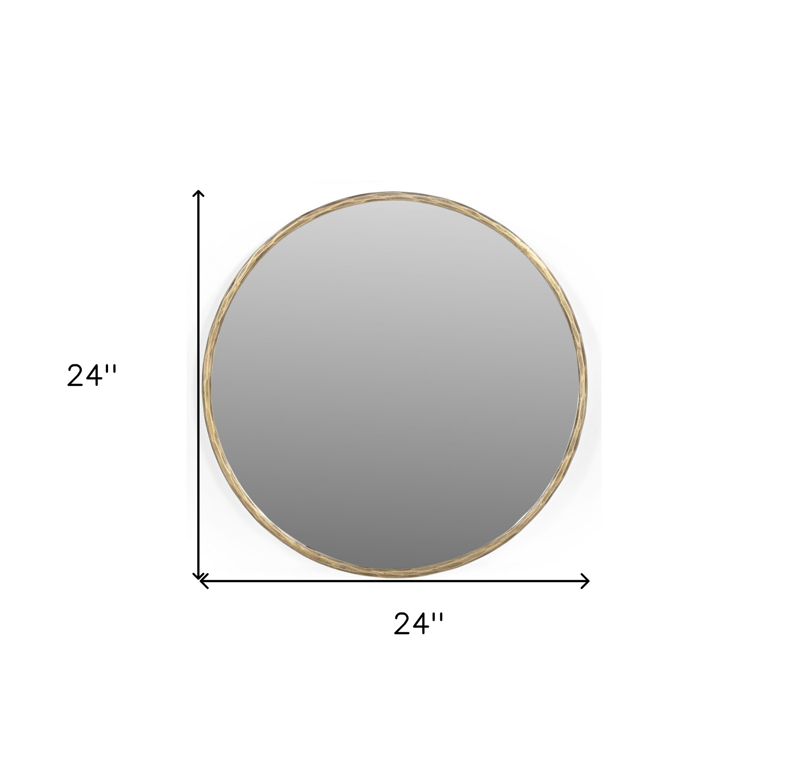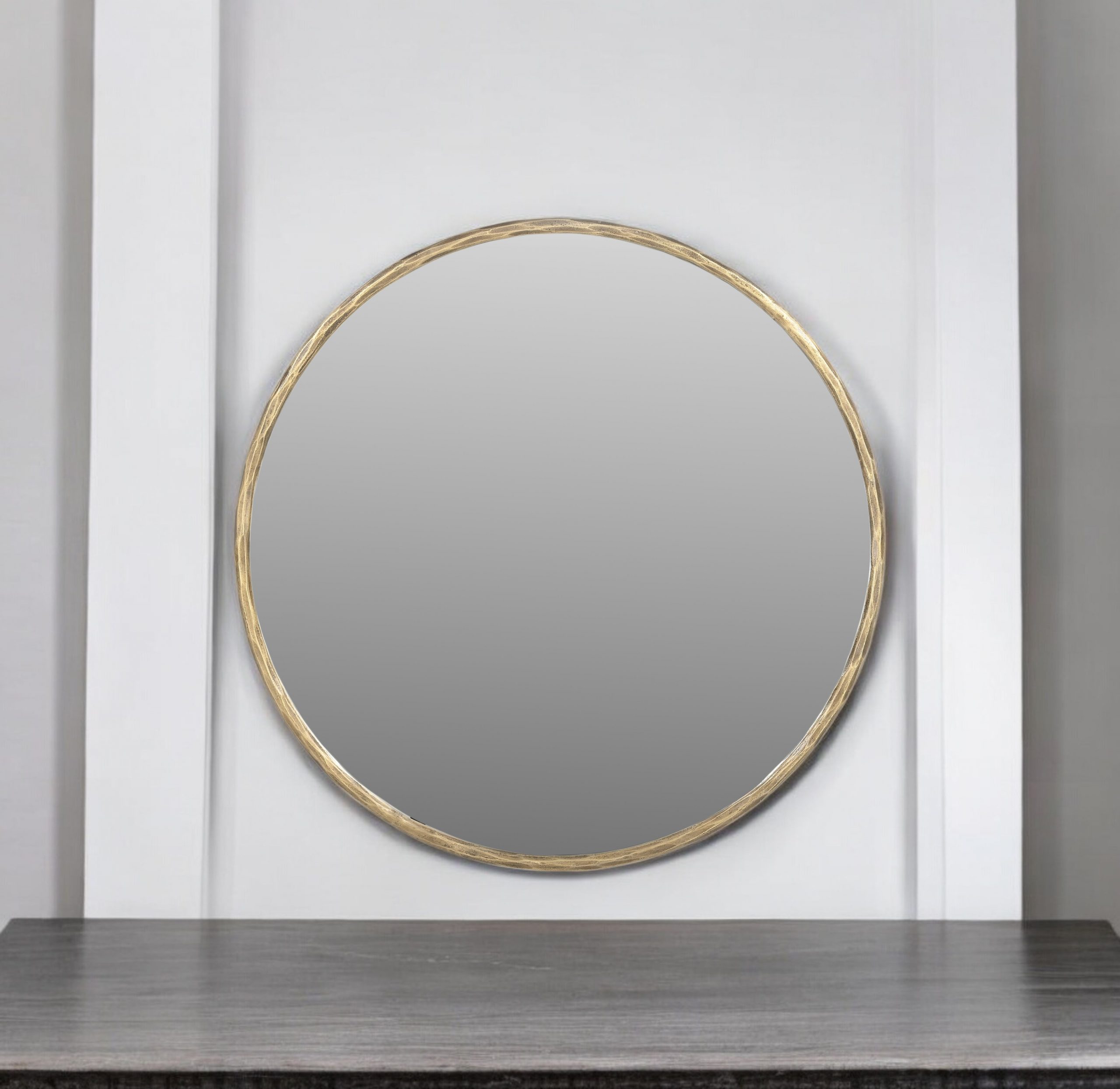 The carefully crafted 24-inch brass round iron framed accent mirror is what you need to add finishing touch to your decor. Framed with iron, this mirror will bring practical application and fashionable design to your space, adding some modern flair to your decor. Features quality craftsmanship in every facet that ensures durability and long-lasting wear. Produced with premium quality glass for a beautiful reflection, this mirror will provide an exceptional visual experience. 24-inch h x 24-inch w x 1.25-inch d.