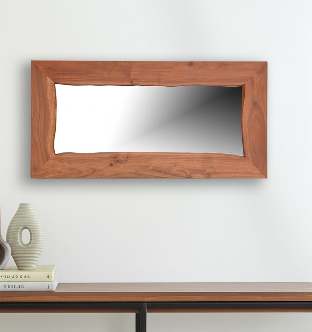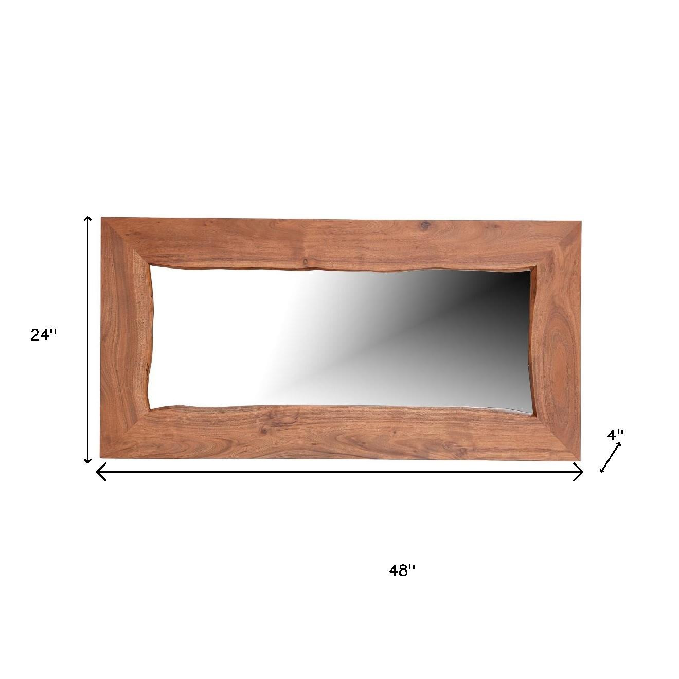 Add a touch of sunshine to any space in your home with this 24-inch brown solid wood freestanding and wall mount accent mirror. Framed with solid wood, this mirror will bring practical application and fashionable design to your space, adding some mid-century flair to your decor. Features quality craftsmanship in every facet that ensures durability and long-lasting wear. Add this exceptional quality mirror to your space for a beautiful reflection and a bit of elevated style. 24-inch h x 48-inch w x 4-inch d.