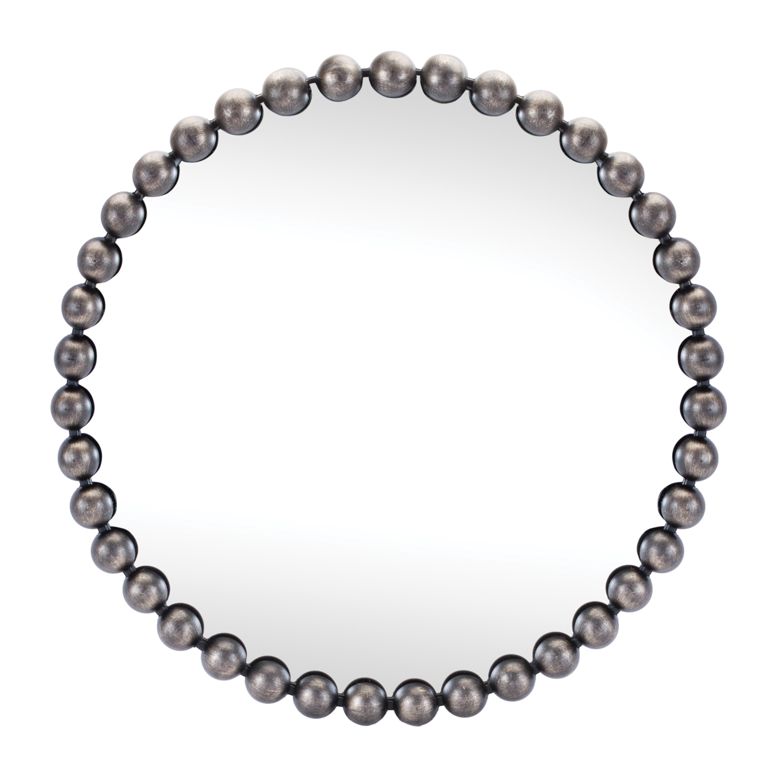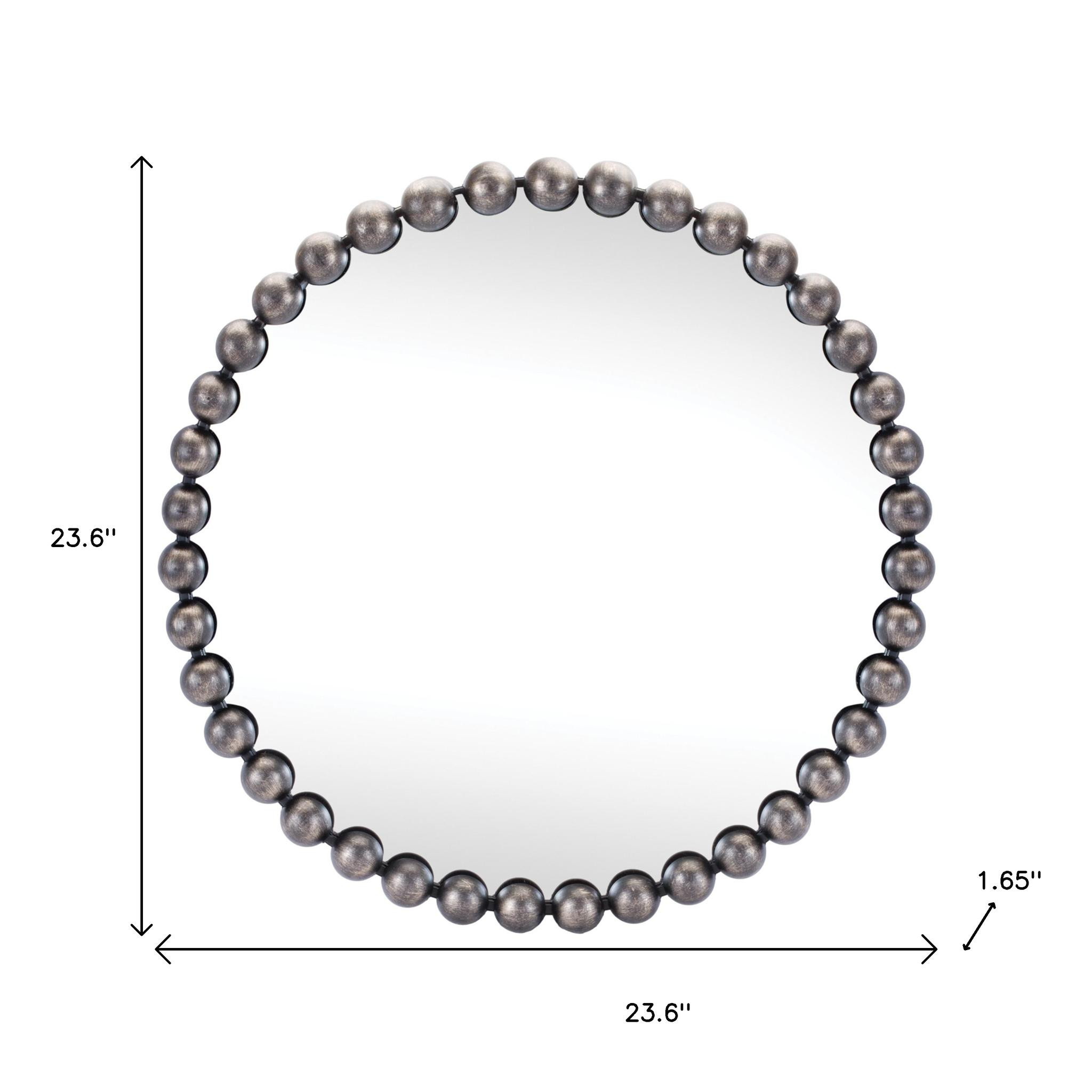 The carefully crafted 24-inch dark gray beaded metal round accent mirror is what you need to add finishing touch to your decor. Framed with iron in a classic beaded pearl geometric design, this mirror will bring practical application and fashionable design to your space, adding some casual flair to your decor. This mirror will be a great useful addition to your home but will also help elevate the space in the room. Produced with premium quality glass for a beautiful reflection, this mirror will provide an exceptional visual experience. 23.6-inch h x 23.6-inch w x 1.65-inch d.