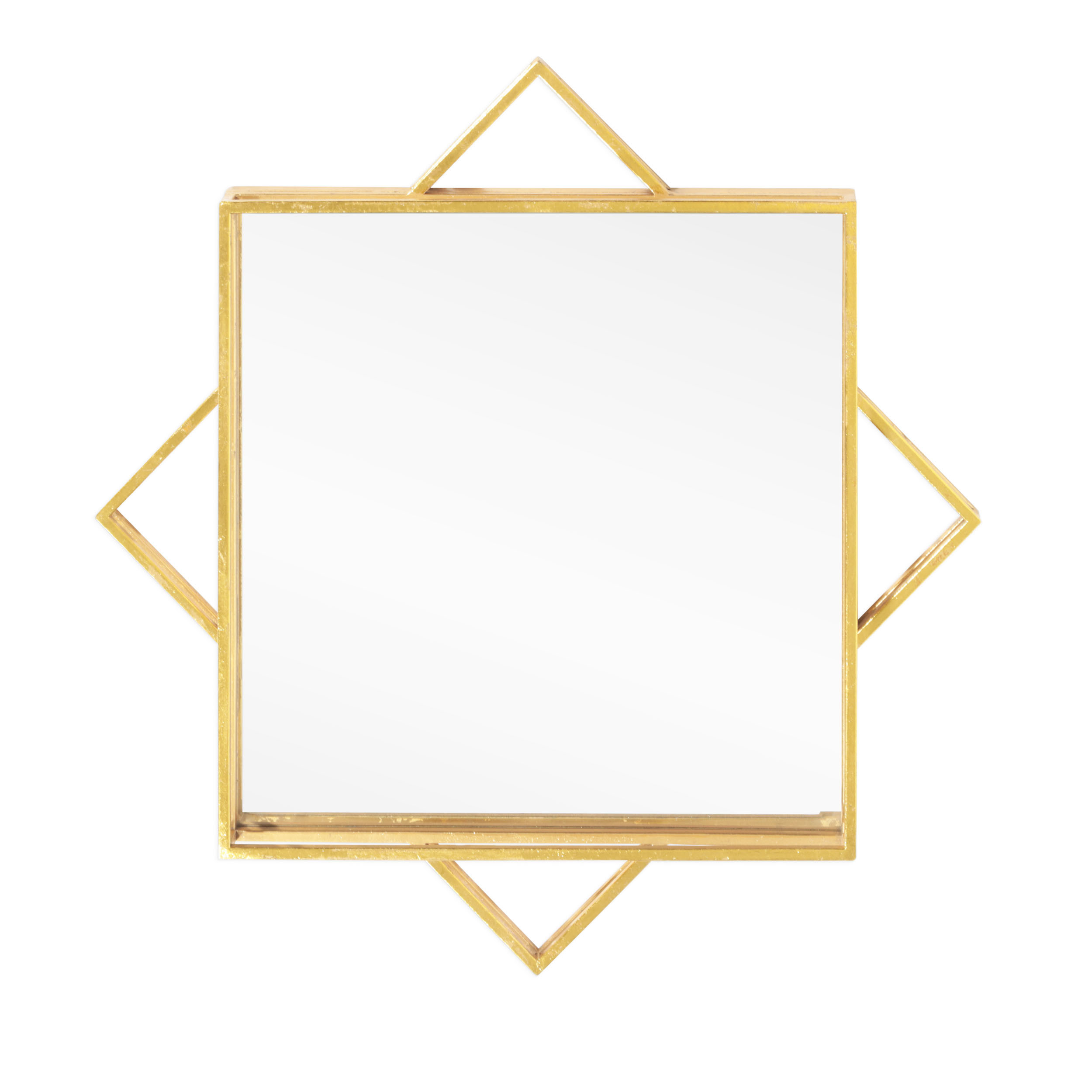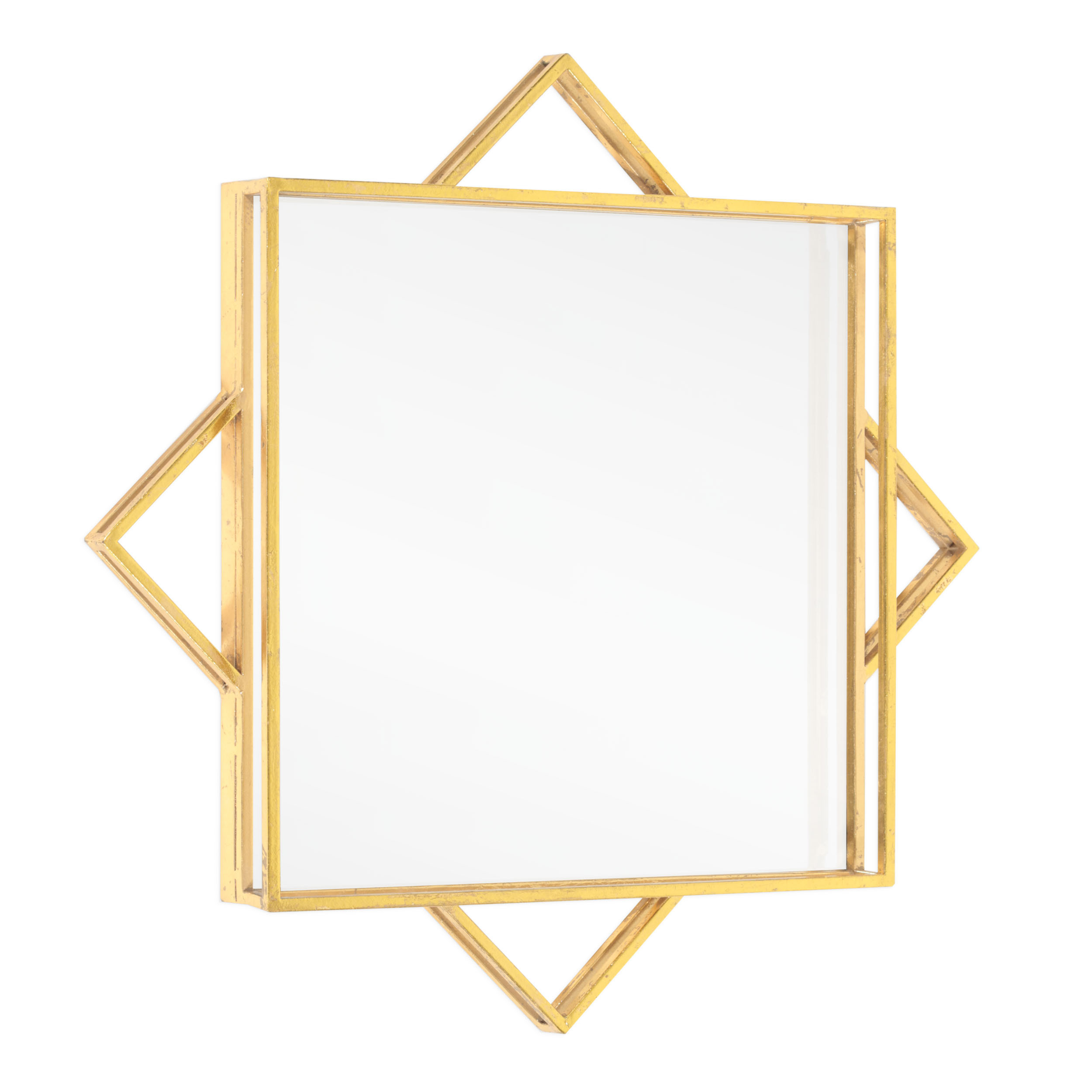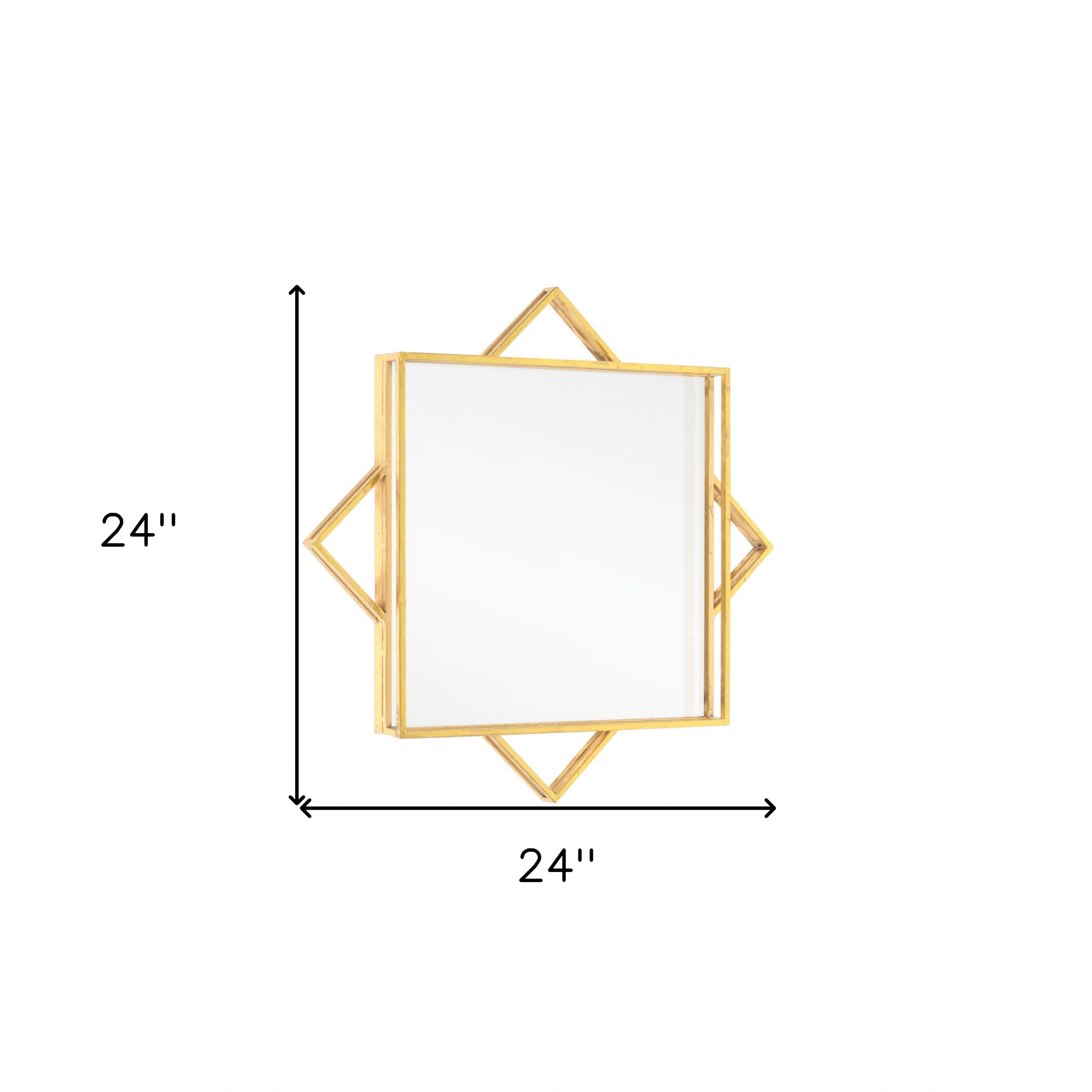 Beautify your space with this 24-inch gold metal geo square accent mirror. Features a uniquely shaped square in square geometric frame. Framed with metal, this mirror will bring practical application and fashionable design to your space, adding some contemporary flair to your decor. Features quality craftsmanship in every facet that ensures durability and long-lasting wear. Add this exceptional quality mirror to your space for a beautiful reflection and a bit of elevated style. 24-inch h x 24-inch w x 2-inch d.