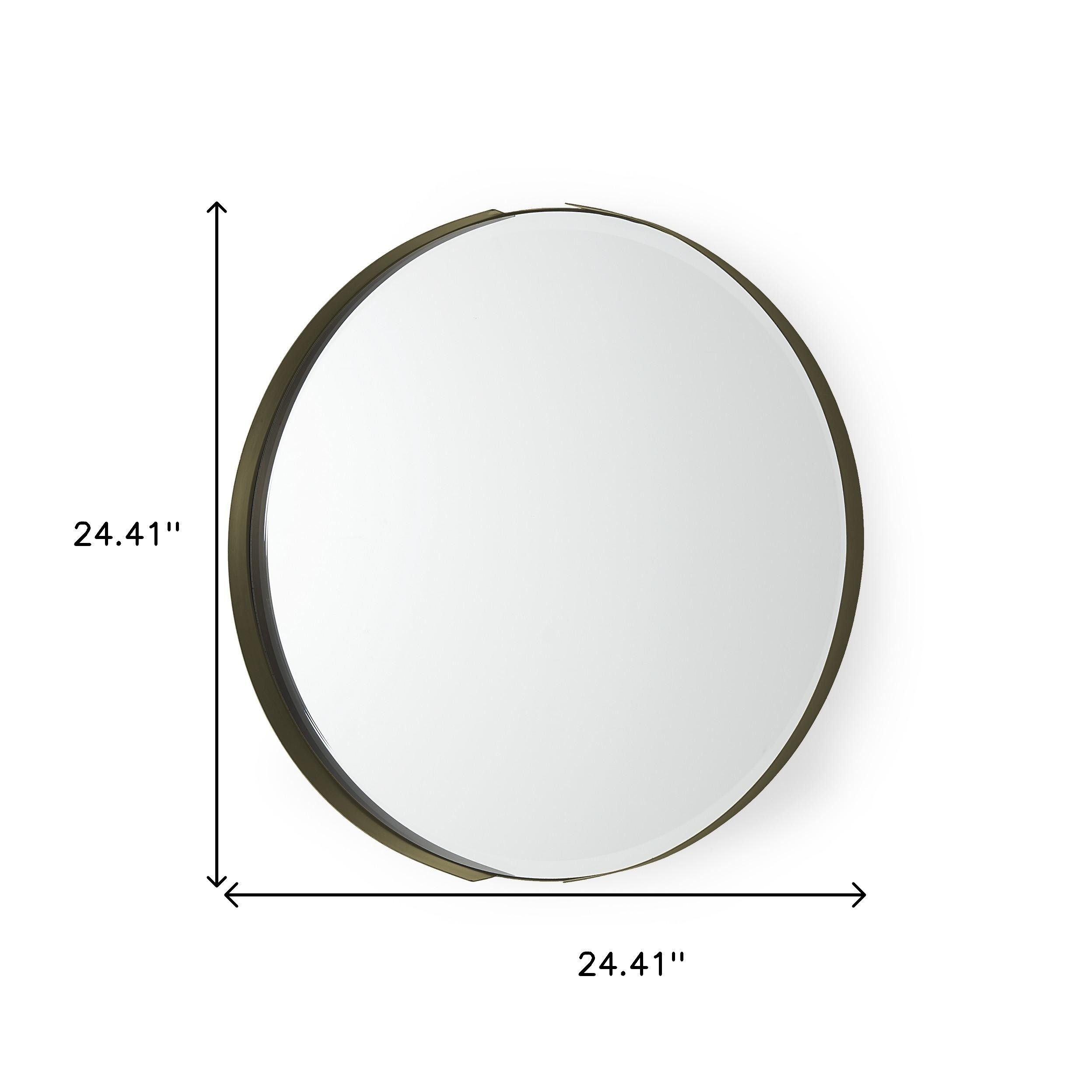 Add a touch of sunshine to any space in your home with this 24-inch gold metal round framed accent mirror. Framed with metal, this mirror will bring practical application and fashionable design to your space, adding some modern flair to your decor. Features quality craftsmanship in every facet that ensures durability and long-lasting wear. Add this exceptional quality mirror to your space for a beautiful reflection and a bit of elevated style. 24.41-inch h x 24.41-inch w x 2.36-inch d.