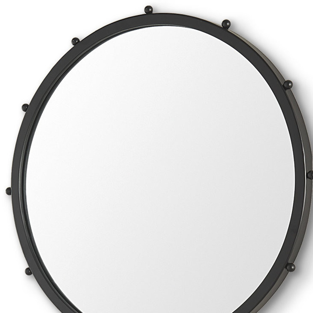 Homeroots – 25″ Black Metal Beaded Round Framed Accent Mirror