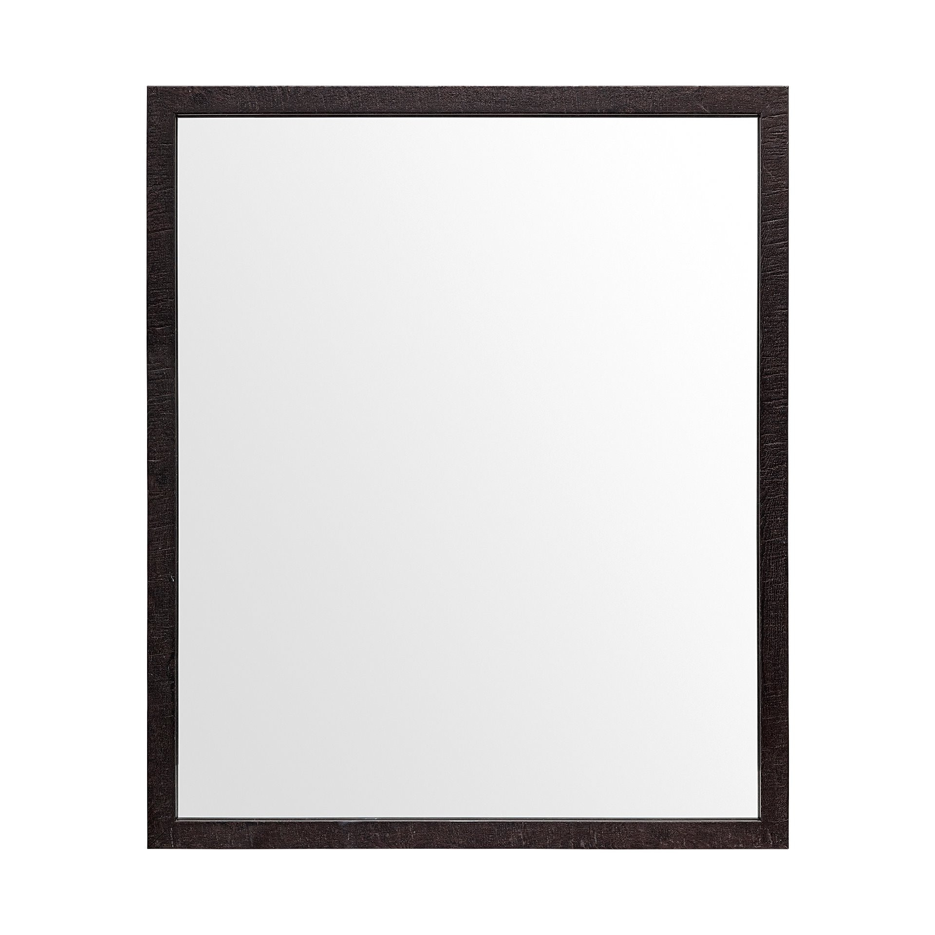 Enhance your bathroom with this 26-inch black framed bathroom vanity mirror. Framed with plastic, this mirror will bring practical application and fashionable design to your space, adding some modern flair to your decor. Features quality craftsmanship in every facet that ensures durability and long-lasting wear. Ideal to mount above your bathroom sink or vanity in your bathroom, this versatile piece can also be used in other rooms to add practical style and design to your space. Produced with premium quality glass for a beautiful reflection, this mirror will provide an exceptional visual experience. 25.50-inch h x 21.50-inch w x 1.75-inch d.