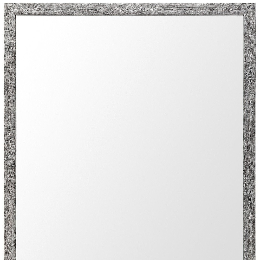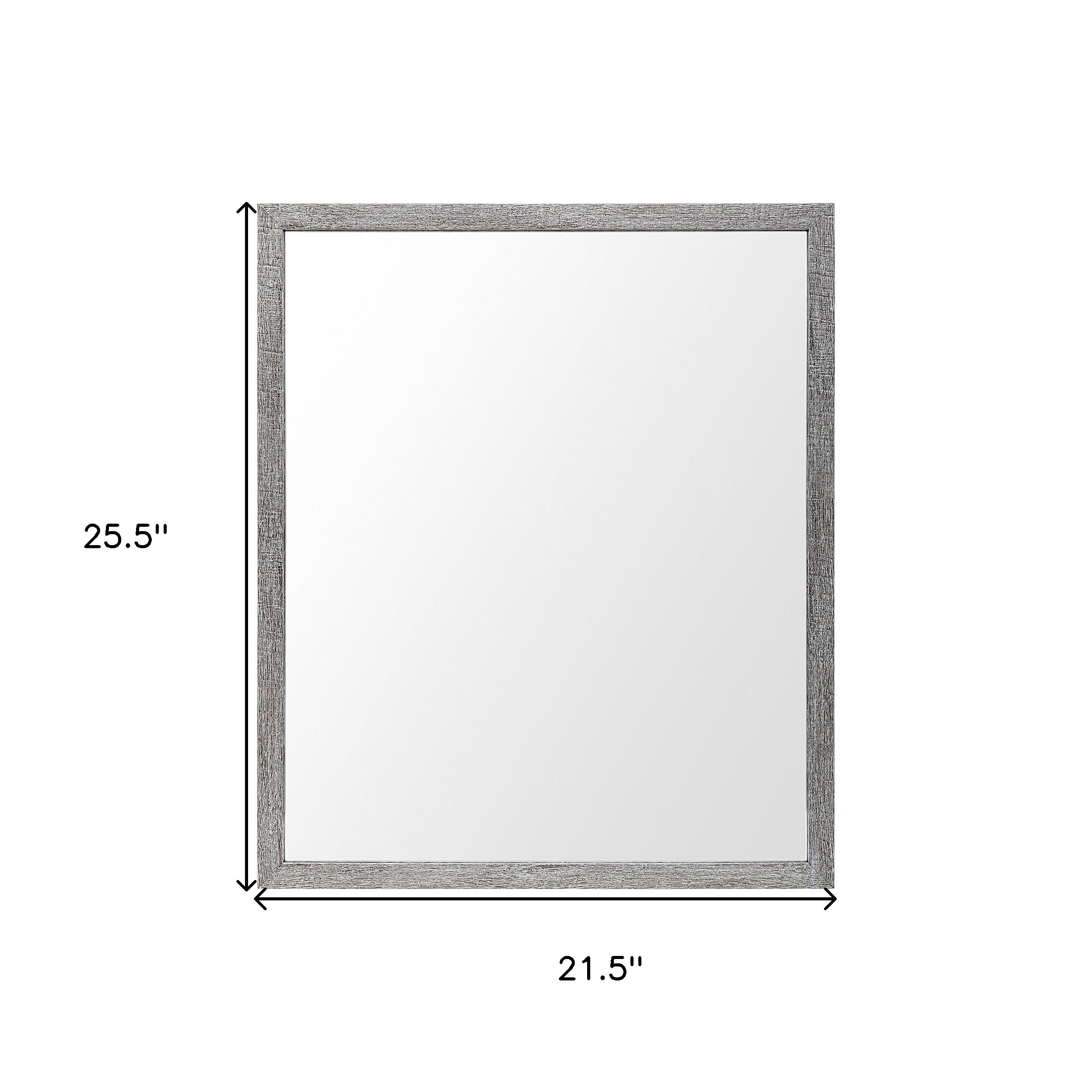 This 26-inch gray framed bathroom vanity mirror will be the perfect way to add some brightness and utility into your bathroom. Framed with plastic, this mirror will bring practical application and fashionable design to your space, adding some modern flair to your decor. Features quality craftsmanship in every facet that ensures durability and long-lasting wear. Ideal to mount above your bathroom sink or vanity in your bathroom, this versatile piece can also be used in other rooms to add practical style and design to your space. Produced with premium quality glass for a beautiful reflection, this mirror will provide an exceptional visual experience. 25.50-inch h x 21.50-inch w x 1.75-inch d.