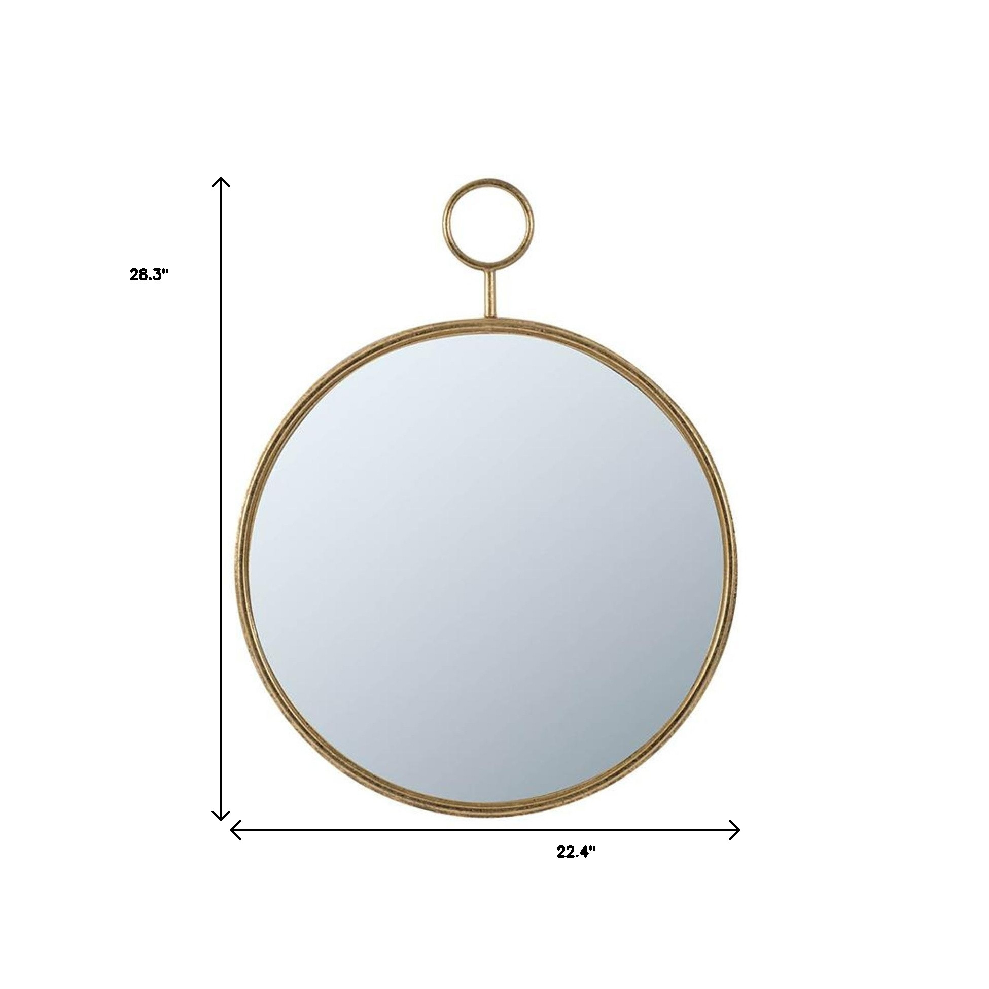 The elegantly crafted 28-inch gold round iron framed accent mirror is what you need to add finishing touch to your decor. This round shaped mirror will open up any space you put in piece in. This frame works nicely with the full-bodied mirror in the middle. Due to its high quality construction, it will last a lifetime. This beautiful mirror will add brightness into any room your choose put this mirror in. 28.3-inch H x 22.4-inch W x 1.8-inch D