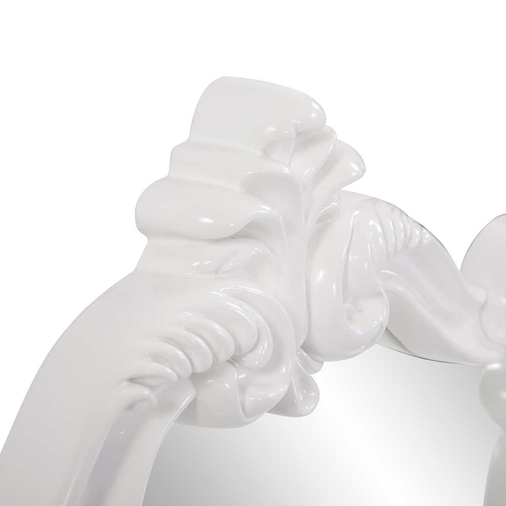 Add a touch of sunshine to any space in your home with this 28-inch white baroque framed accent mirror. This frame features gorgeous and ornate baroque scrolling shape and transitional style of this piece will work great in any room you choose to put it in. Its both exceptional and tasteful, and its tough as well. This mirror is a perfect accent piece for an entryway, bathroom, bedroom or any room in your home. 28-inch H x 32-inch W x 2-inch D