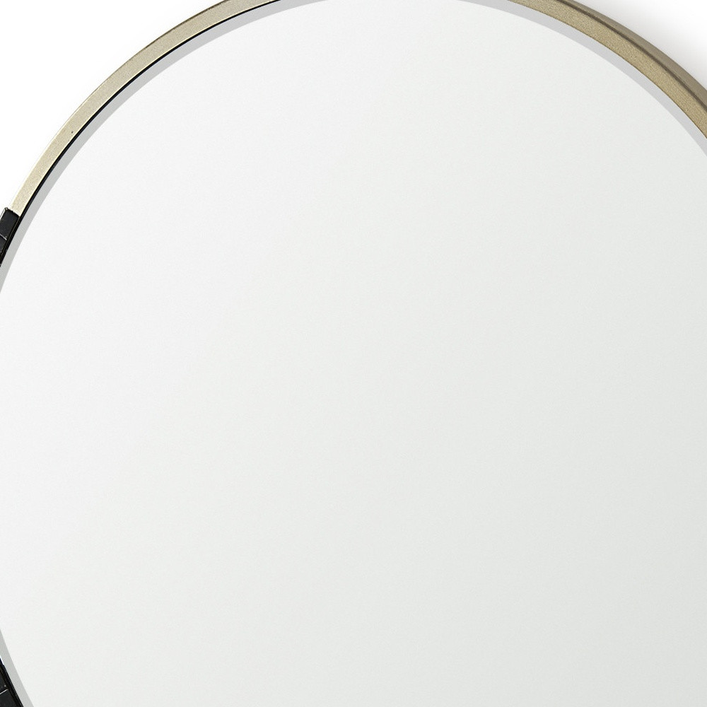 Add a touch of sunshine to any space in your home with this 29-inch gold and black metal round framed accent mirror. Framed with metal, this mirror will bring practical application and fashionable design to your space, adding some modern flair to your decor. This mirror will be a great useful addition to your home but will also help elevate the space in the room. Add this exceptional quality mirror to your space for a beautiful reflection and a bit of elevated style. 28.54-inch h x 28.54-inch w x 1.57-inch d.
