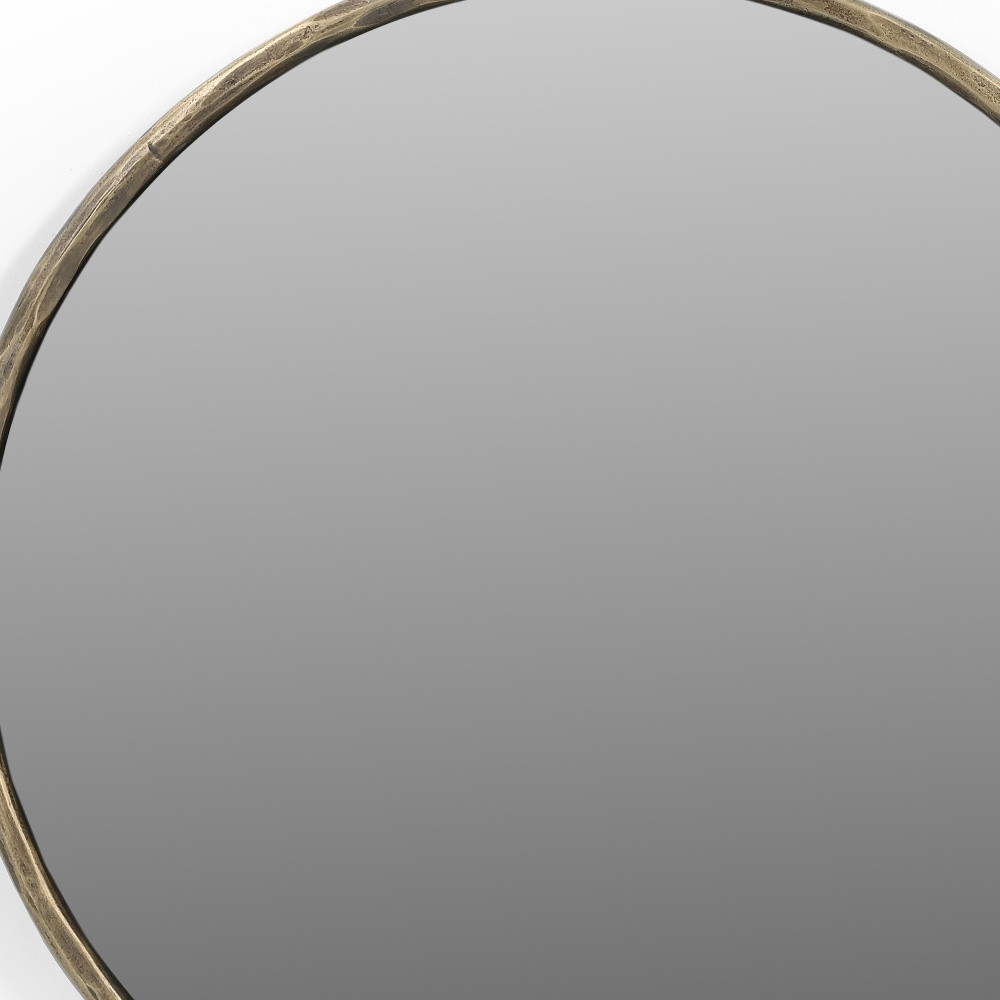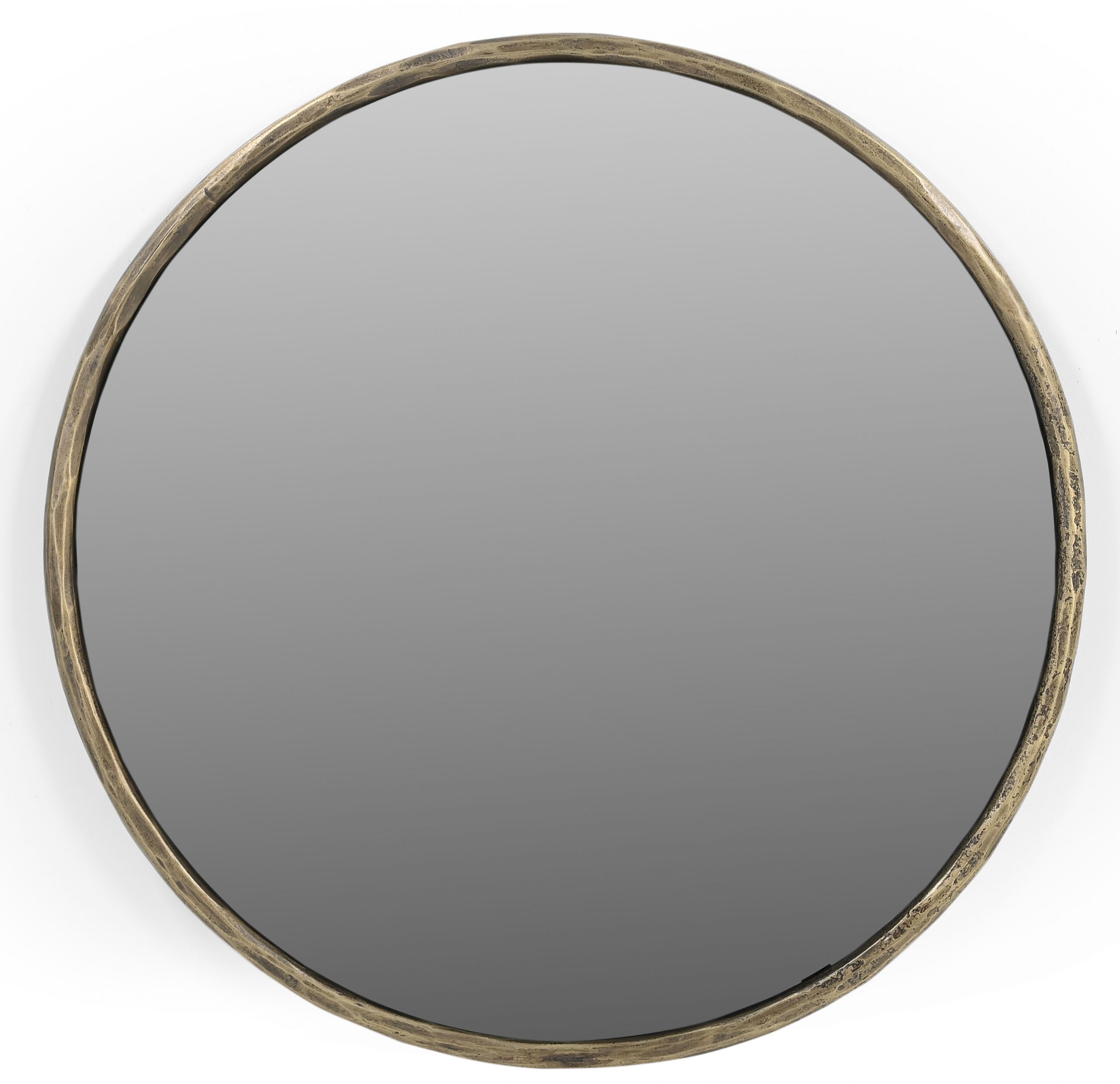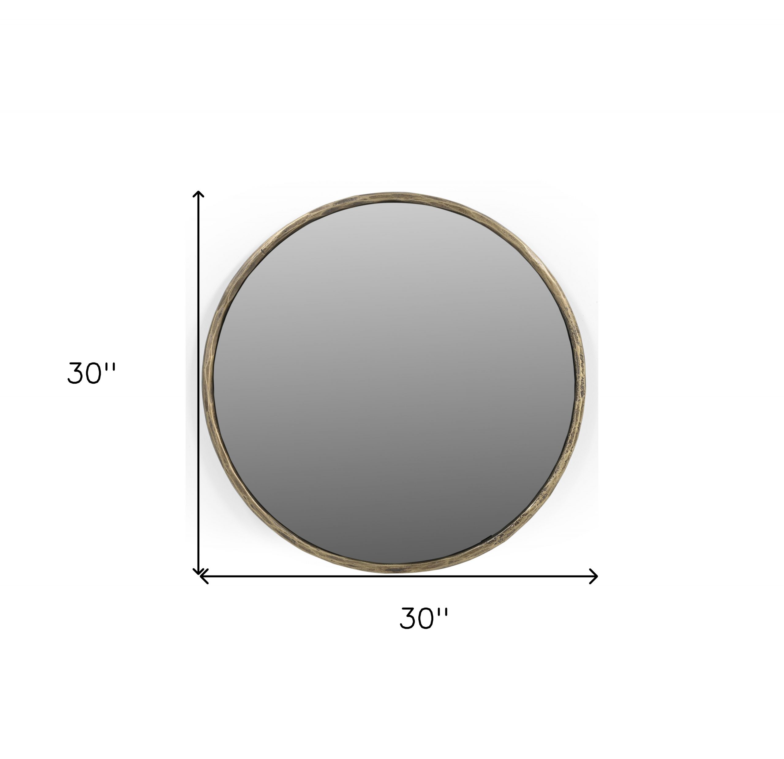 Add a touch of sunshine to any space in your home with this 30-inch brass round iron framed accent mirror. Framed with iron, this mirror will bring practical application and fashionable design to your space, adding some modern flair to your decor. This mirror will be a great useful addition to your home but will also help elevate the space in the room. Produced with premium quality glass for a beautiful reflection, this mirror will provide an exceptional visual experience. 30-inch h x 30-inch w x 1.25-inch d.