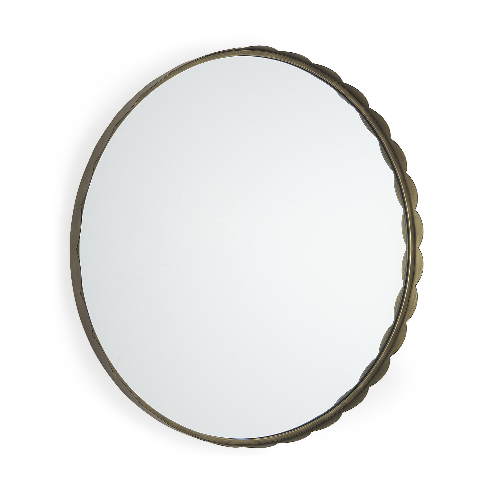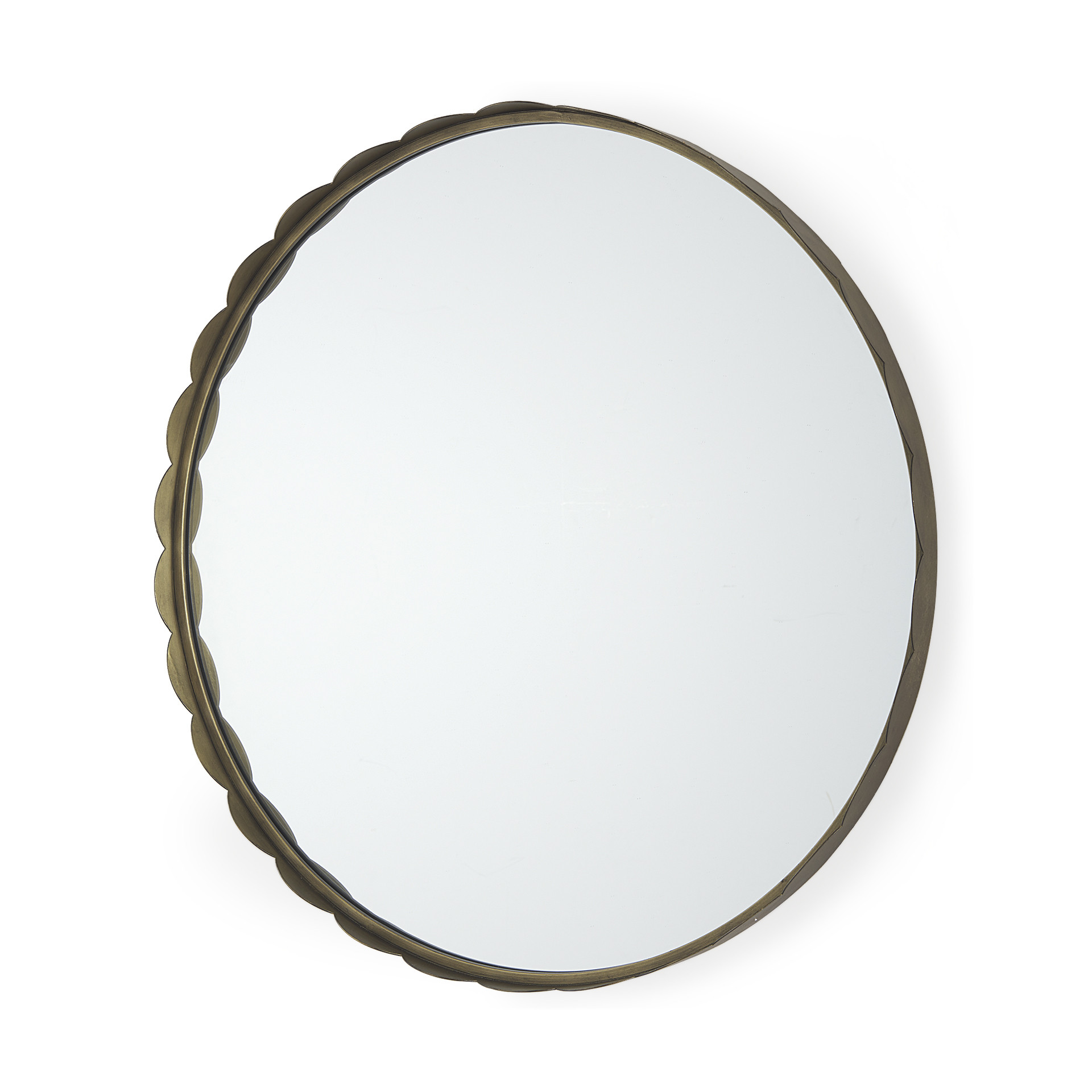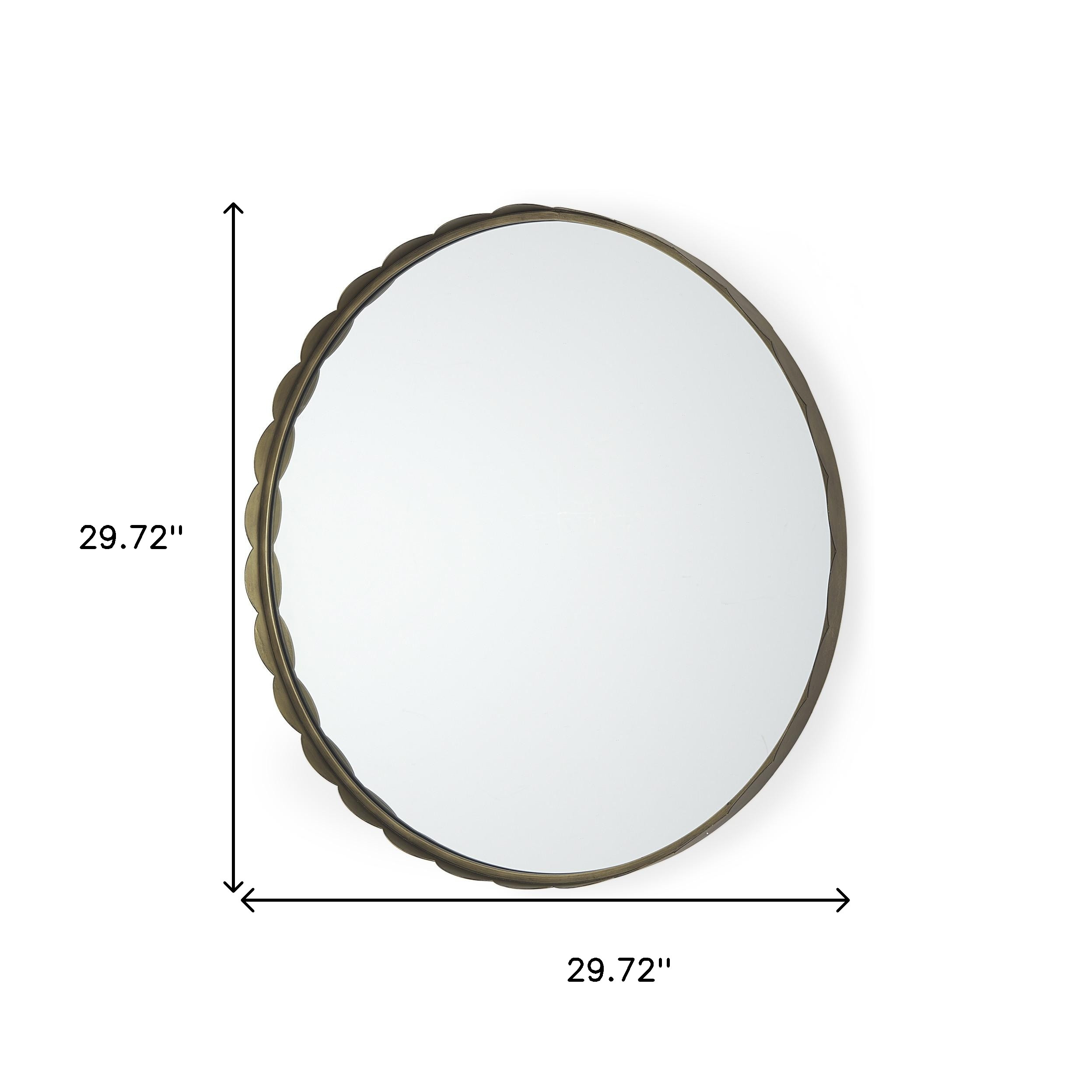 Beautify your space with this 30-inch gold metal scalloped framed accent mirror. Framed with metal, this mirror will bring practical application and fashionable design to your space, adding some modern flair to your decor. This mirror will be a great useful addition to your home but will also help elevate the space in the room. Produced with premium quality glass for a beautiful reflection, this mirror will provide an exceptional visual experience. 29.72-inch h x 29.72-inch w x 1.97-inch d.