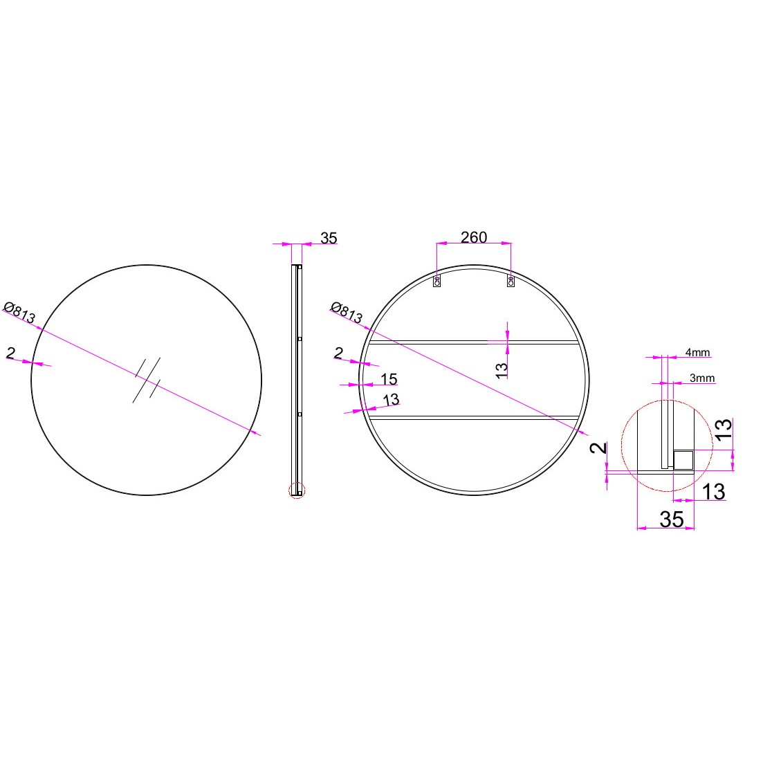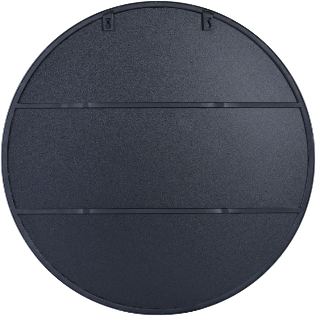 The elegantly crafted 32-inch black round metal framed accent mirror is what you need to add finishing touch to your decor. The round shaped mirror adds a nice touch of depth and texture and also makes it very practical. This frame works nicely with the full-bodied mirror in the middle. Its modern style makes this mirror a favorite for bringing some flair to your decor. Its style is certain to get rid of that trifling feel of boredom, and the quality of its finish and color will grant your place a flavor of fashion. This mirror will not only be a great practical addition to any location of your home but will also help elevate the space in the room. 32-inch H x 32-inch W x 1.4-inch D