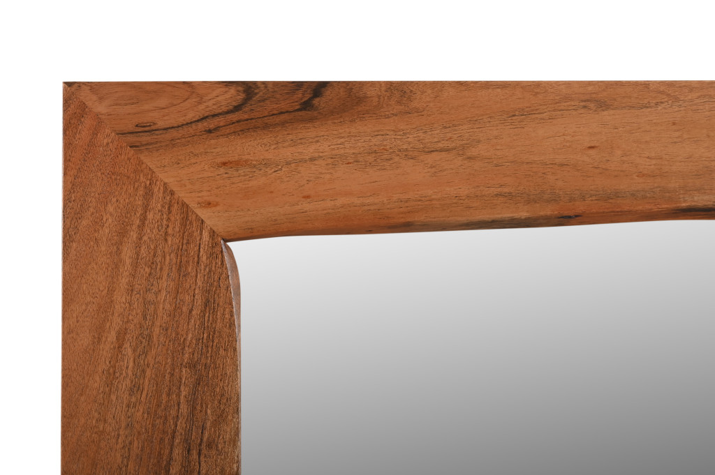 This 32-inch brown live edge solid wood full length hanging mirror will be an elegant addition to your bedroom, dressing area, hallway, or living room. Framed with solid wood, this mirror will bring practical application and fashionable design to your space, adding some mid-century flair to your decor. Features quality craftsmanship in every facet that ensures durability and long-lasting wear. Produced with premium quality glass for a beautiful reflection, this mirror will provide an exceptional visual experience. 32-inch h x 72-inch w x 4-inch d.