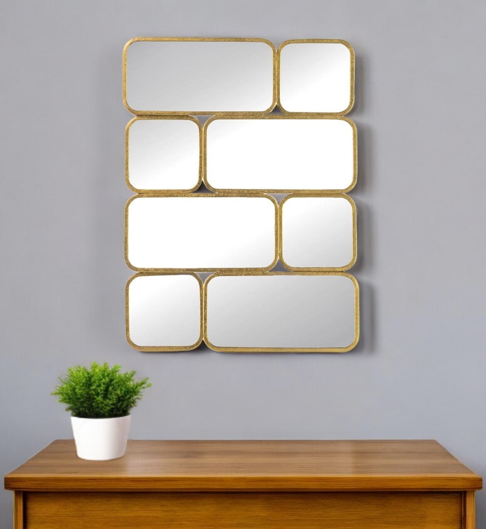 Add a touch of sunshine to any space in your home with this 32-inch gold iron framed accent mirror. This mirror has a rectangle shape providing the most magnificent reflections of light and color. This frame works nicely with the full-bodied mirror in the middle. Due to its high quality construction, it will last a lifetime. This mirror has the perfect length to place against your wall and will match all aesthetic. 32-inch H x 24-inch W x 2.4-inch D