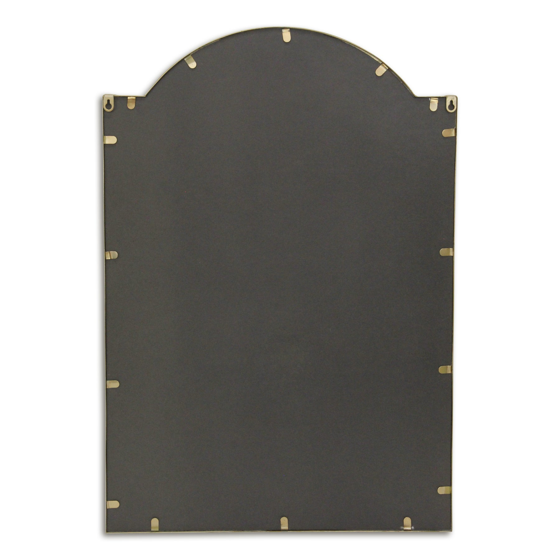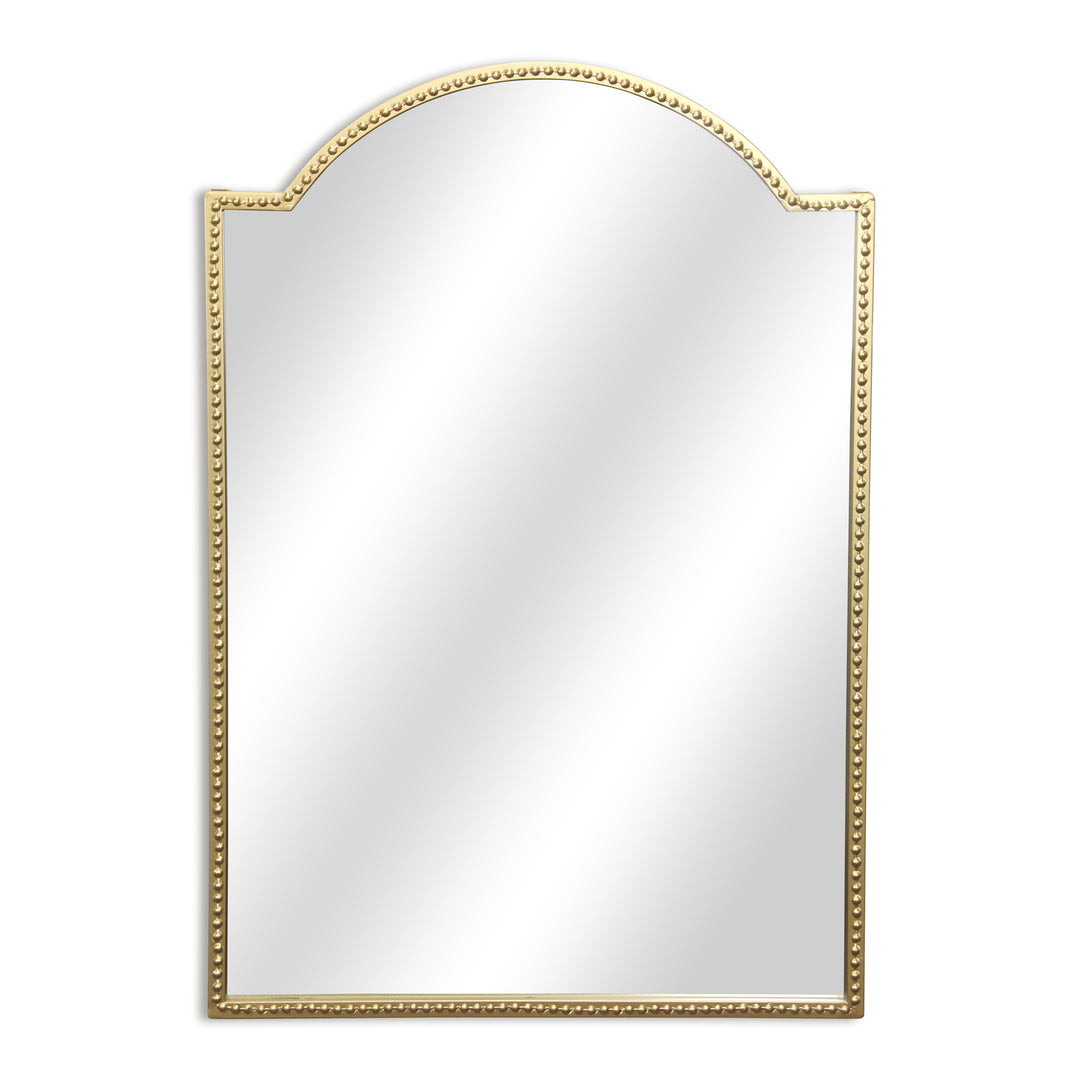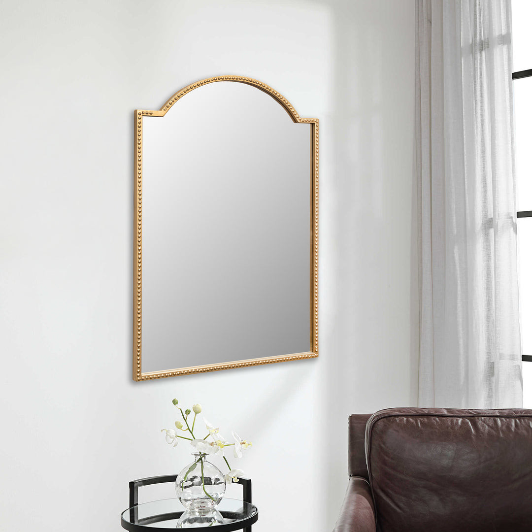 Add a touch of sunshine to any space in your home with this 32-inch gold metal beaded arch accent mirror. Framed with metal in a gold finish, this gorgeous piece also features a beaded border that brings and updated and fresh design to your space. This mirror will be a great useful addition to your home but will also help elevate the space in the room. Produced with premium quality glass for a beautiful reflection, this mirror will provide an exceptional visual experience. 32-inch h x 22-inch w x 1-inch d.