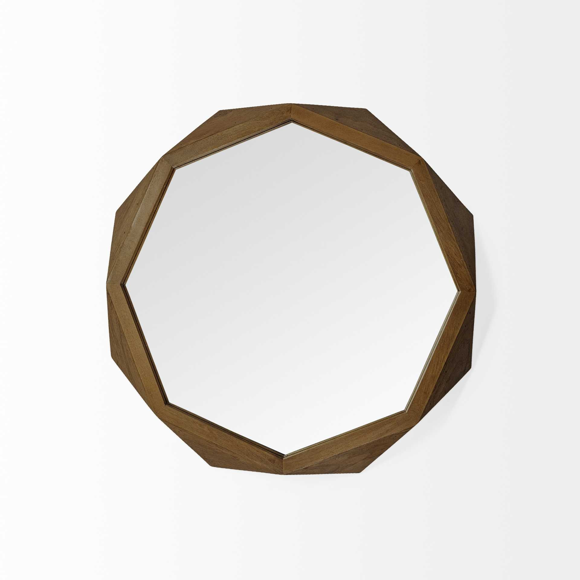 Make a unique addition to your space with this delectable mirror. The mirror is held in an octagonal wooden frame and given a brown finish that will match any setting. Add it to your home collection and enjoy the coastal style it adds to your space. Dimensions: 32″.