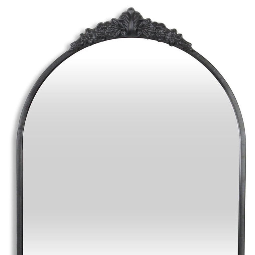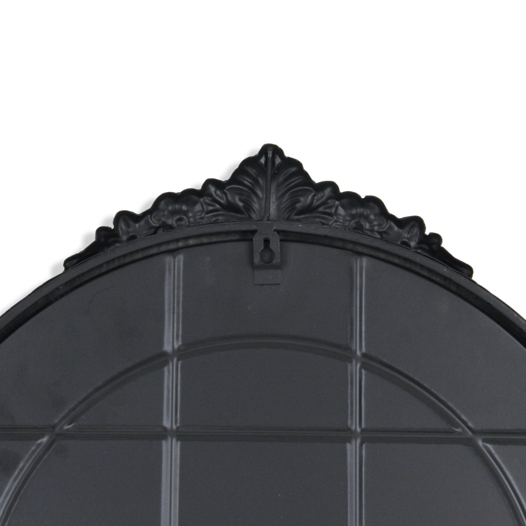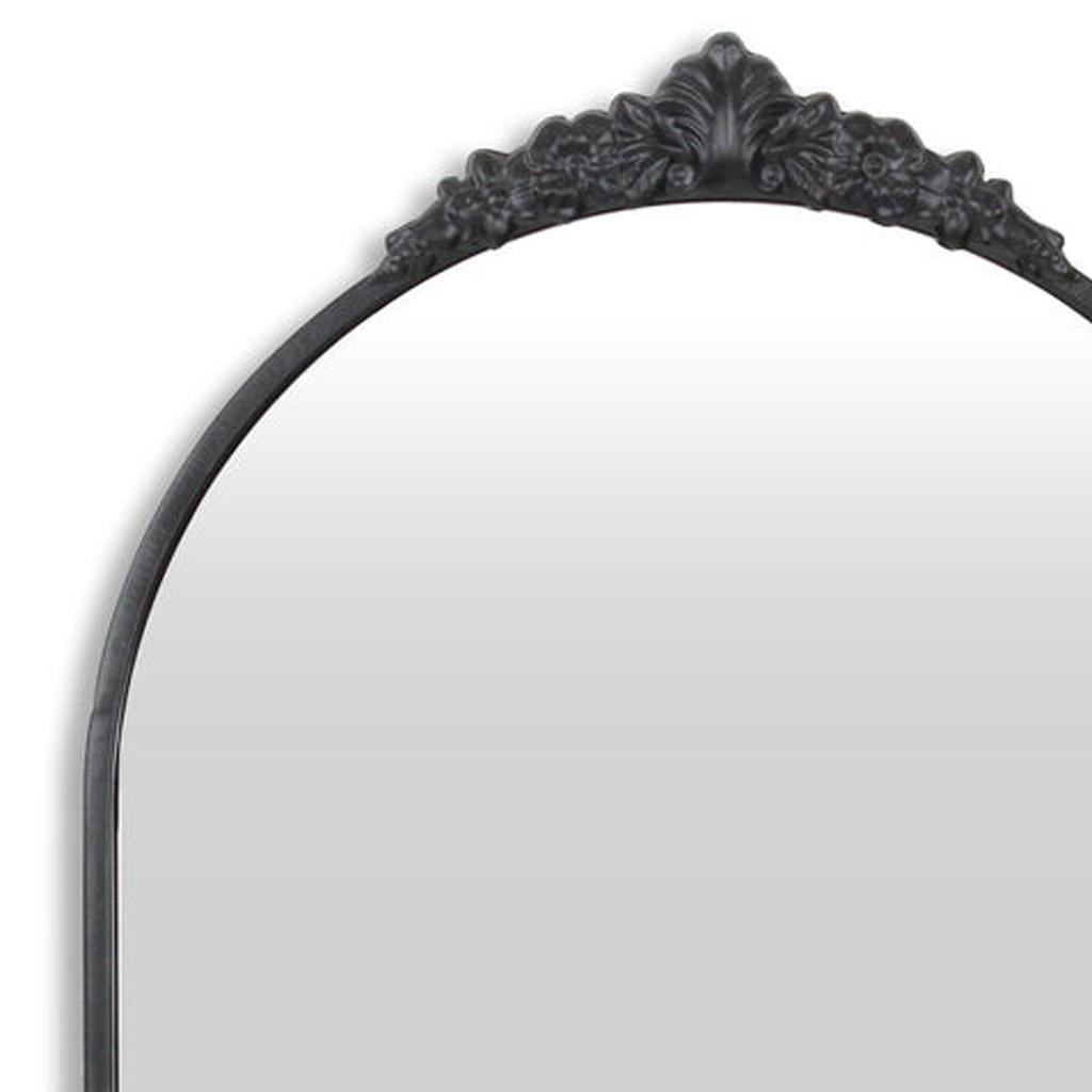 Beautify your space with this 34-inch black metal arch accent mirror. Framed with metal in a black finish, this mirror will bring practical application and fashionable design to your space, adding some Victorian flair to your decor. This mirror will be a great useful addition to your home but will also help elevate the space in the room. Add this exceptional quality mirror to your space for a beautiful reflection and a bit of elevated style. 34-inch h x 19.25-inch w x 1.25-inch d.