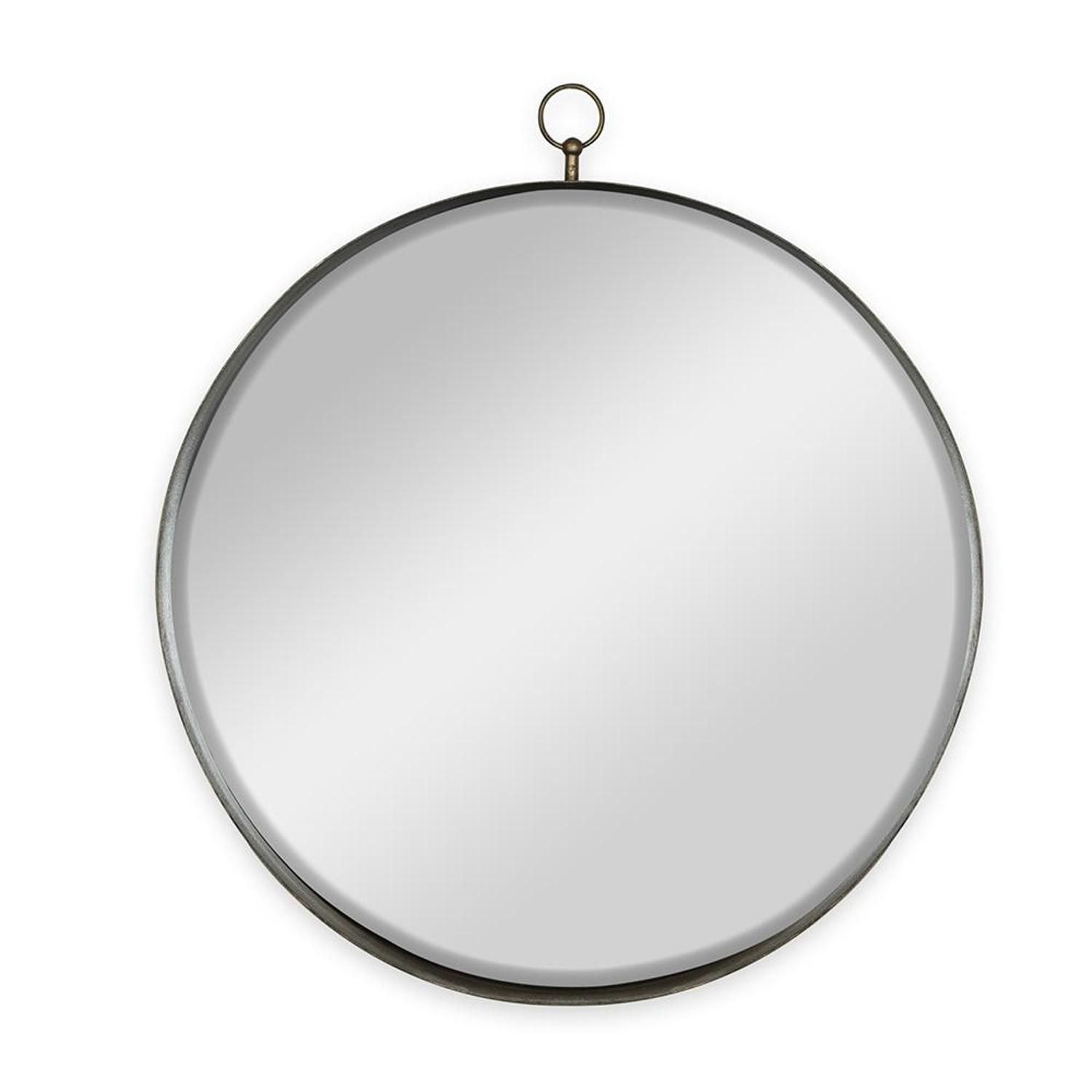 Add a touch of sunshine to any space in your home with this 34-inch gold round iron framed accent mirror. This round shaped mirror will open up any space you put in piece in. Its contemporary style makes this the perfect versatile accent piece for most any decor. Due to its high quality construction, it will last a lifetime. This unique mirror will look great as part of your existing wall decor or you can use it as a statement piece anywhere in your home. 34-inch H x 30-inch W x 1-inch D