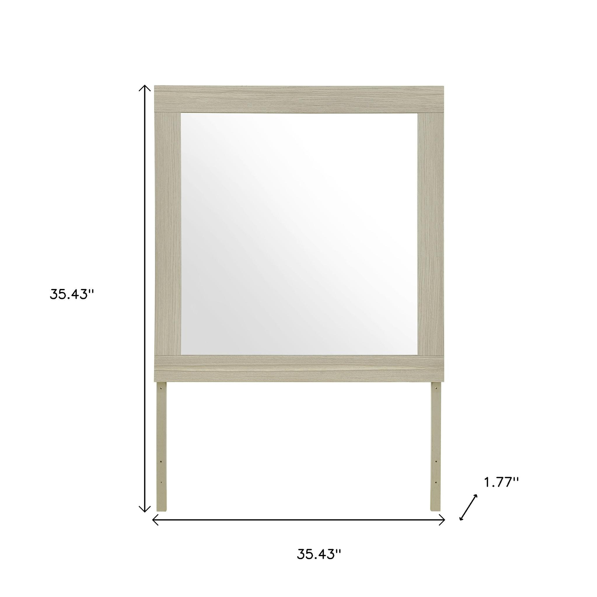 Providing function and style, this 35-inch natural wood square mounted framed dresser mirror is just what you need to liven up your bedroom. Framed with a mix of solid and manufactured wood, this mirror is designed to attach to your dresser and sit on top of it to bring practical application and fashionable design to your space, adding some transitional flair to your decor. This mirror is the perfect choice to update your bedroom and create a sanctuary of comfortable and inviting relaxation for your home for years to come. Add this exceptional quality mirror to your space for a beautiful reflection and a bit of elevated style. 35.43-inch h x 35.43-inch w x 1.77-inch d.