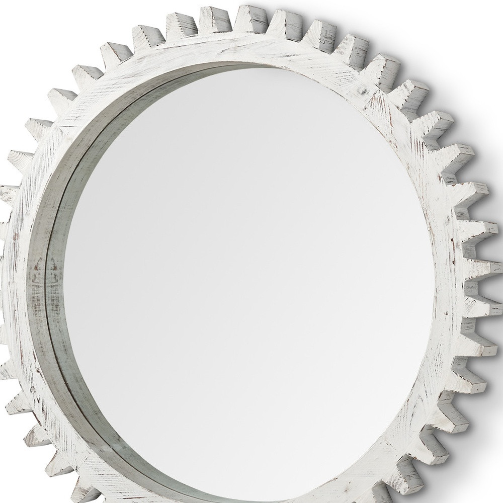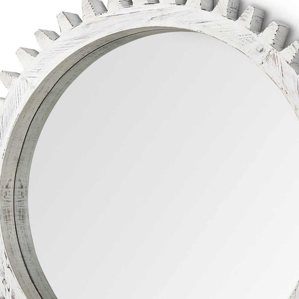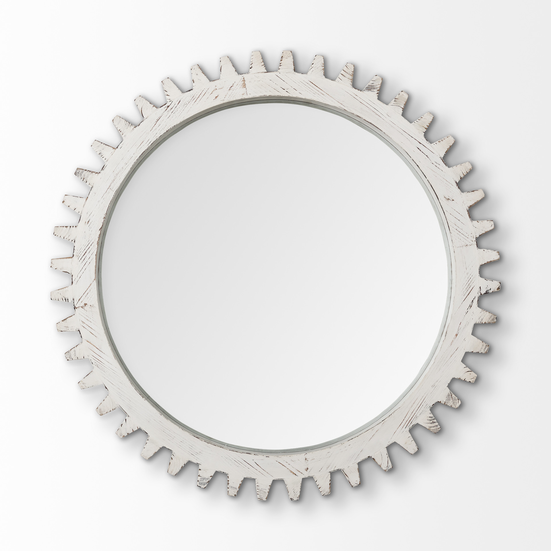 The carefully crafted 35-inch white abstract wood framed accent mirror is what you need to add finishing touch to your decor. Framed with manufactured wood, this mirror will bring practical application and fashionable design to your space, adding some industrial flair to your decor. This mirror will be a great useful addition to your home but will also help elevate the space in the room. Produced with premium quality glass for a beautiful reflection, this mirror will provide an exceptional visual experience. 35.43-inch h x 35.4-inch w x 3.5-inch d.