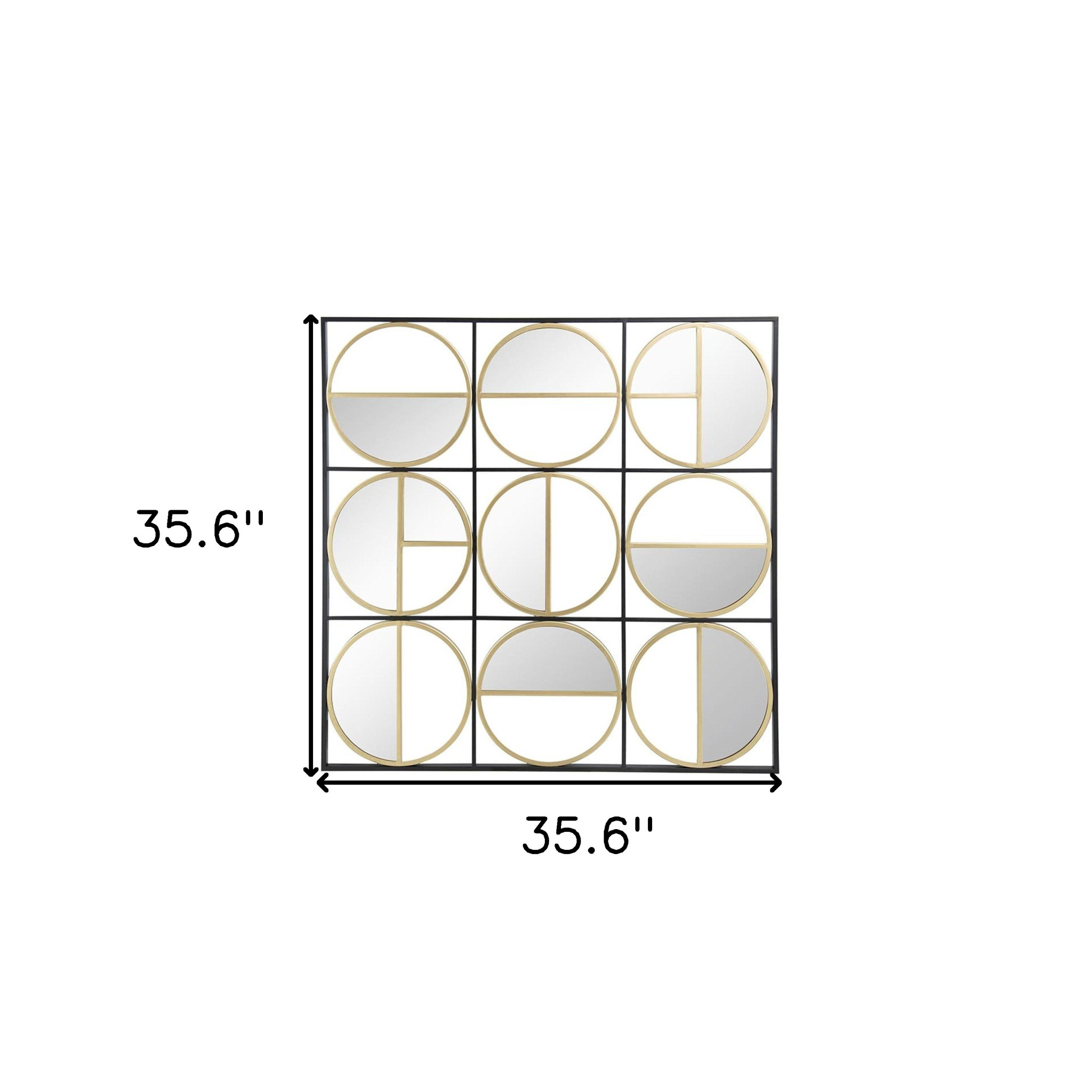 Beautify your space with an ornament that’s original and unique at the same time with this 36-inch black and gold square iron framed accent mirror. This mirror has a square shape providing the most magnificent reflections of light and color. This frame works nicely with the full-bodied mirror in the middle. The contemporary style of this piece will work great in any room you choose to put it in. Due to its high quality construction, it will last a lifetime. On its own or in multiples, this mirror is a perfect accent piece for an entryway, bathroom, bedroom or any room in your home. 35.6-inch H x 35.6-inch W x 0.8-inch D