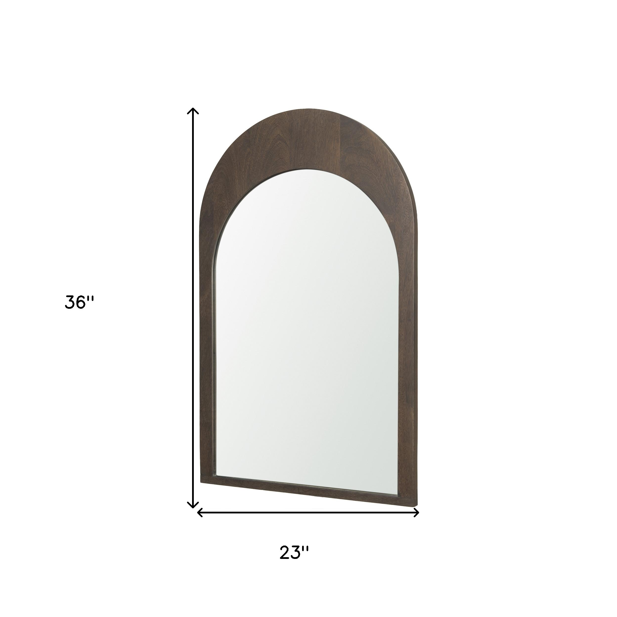 The carefully crafted 36-inch brown solid wood arch framed accent mirror is what you need to add finishing touch to your decor. Framed with solid wood, this mirror will bring practical application and fashionable design to your space, adding some modern flair to your decor. This mirror will be a great useful addition to your home but will also help elevate the space in the room. Produced with premium quality glass for a beautiful reflection, this mirror will provide an exceptional visual experience. 36.00-inch h x 23.00-inch w x 1.00-inch d.