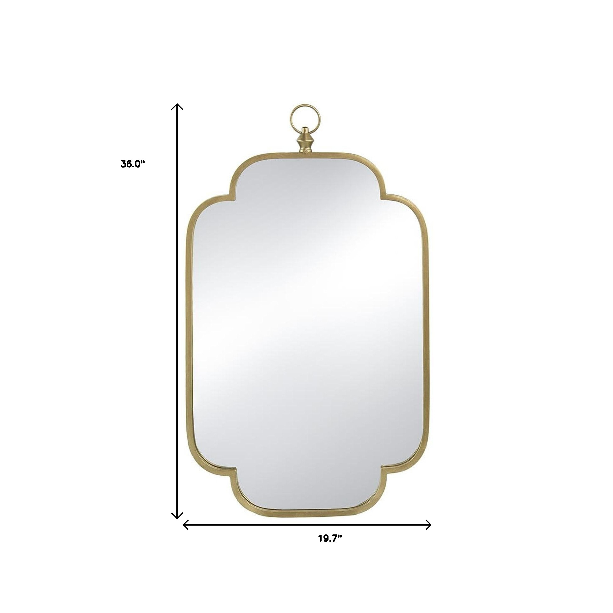 Beautify your space with an ornament that’s original and unique at the same time with this 36-inch gold novelty iron framed accent mirror. This mirror has a novelty shape providing the most magnificent reflections of light and color. This frame works nicely with the full-bodied mirror in the middle. Due to its high quality construction, it will last a lifetime. This mirror has the perfect length to place against your wall and will match all aesthetic. 36-inch H x 19.7-inch W x 1-inch D