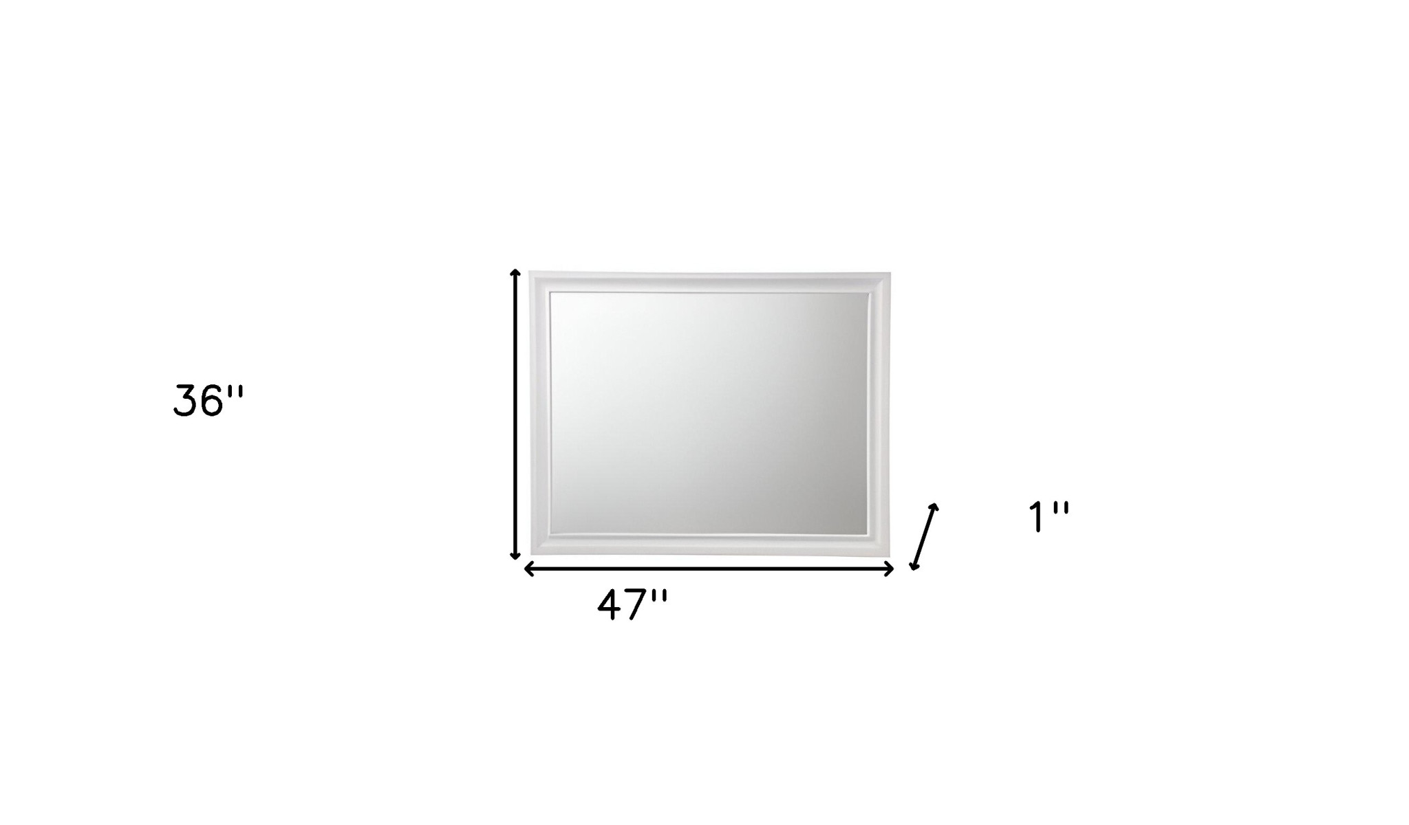 Providing function and style, this 36-inch white wood framed mounted dresser mirror is just what you need to liven up your bedroom. Framed with wood, this mirror will bring practical application and fashionable design to your space, adding some contemporary flair to your decor. Features quality craftsmanship in every facet that ensures durability and long-lasting wear. This mirror is the perfect choice to update your bedroom and create a sanctuary of comfortable and inviting relaxation for your home for years to come. Produced with premium quality glass for a beautiful reflection, this mirror will provide an exceptional visual experience. 36-inch h x 47-inch w x 1-inch d.