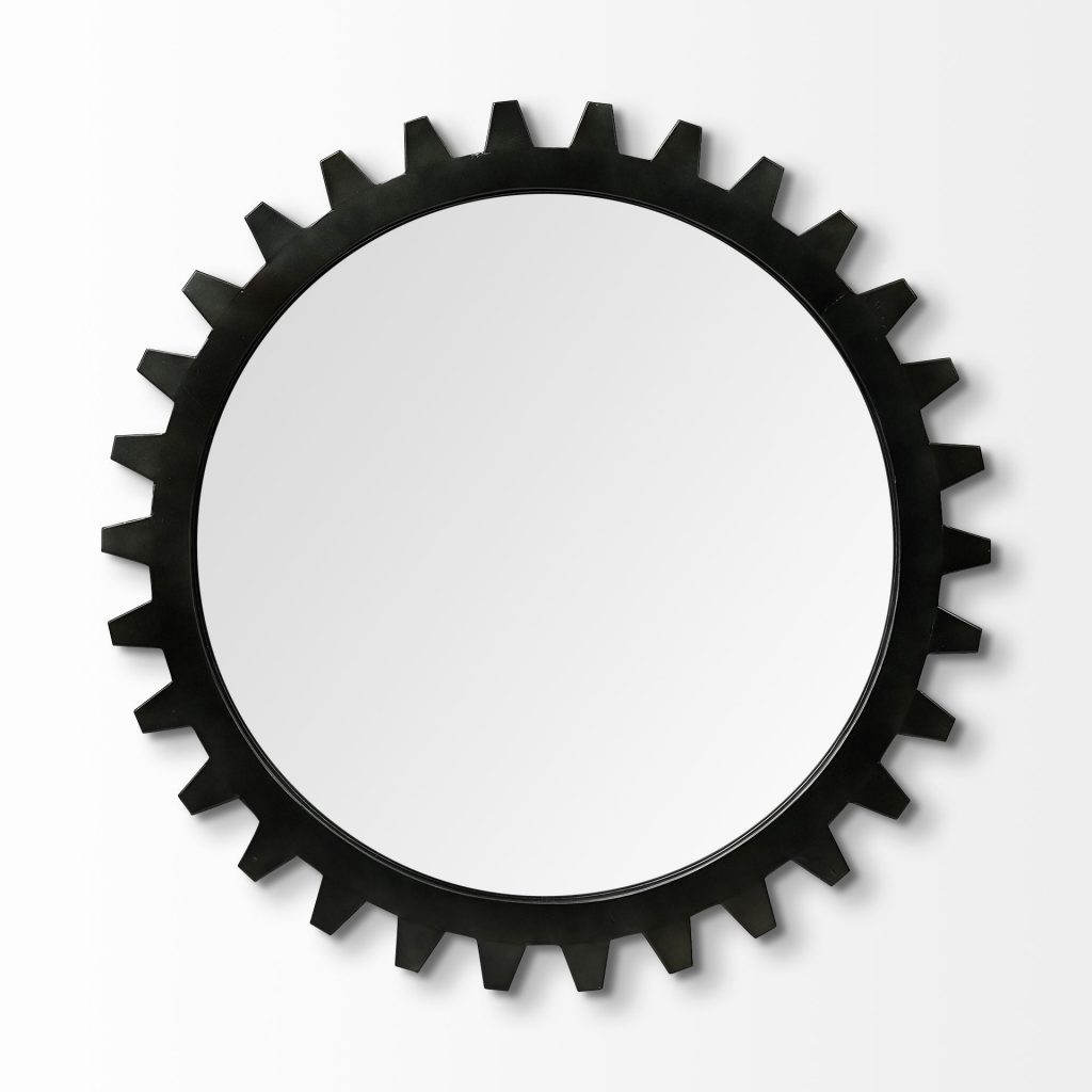 Homeroots channels industrial sophistication through this 37-inch round mirror featuring striking black metal frame evoking interlocking geometric precision. The frame’s architectural rhythm creates visual texture through systematic pattern repeating across circular form, celebrating geometric mathematics while maintaining contemporary industrial aesthetic. At 37 inches diameter, the substantial scale establishes commanding focal point appropriate for primary bedrooms, living rooms, and spaces where architectural presence matters. The black metal finish reads as intentional contemporary choice suggesting minimalist aesthetic values and design confidence. The geometric patterning prevents visual flatness that solid-color frames produce, instead creating dimensional complexity inviting sustained examination from multiple viewing angles.