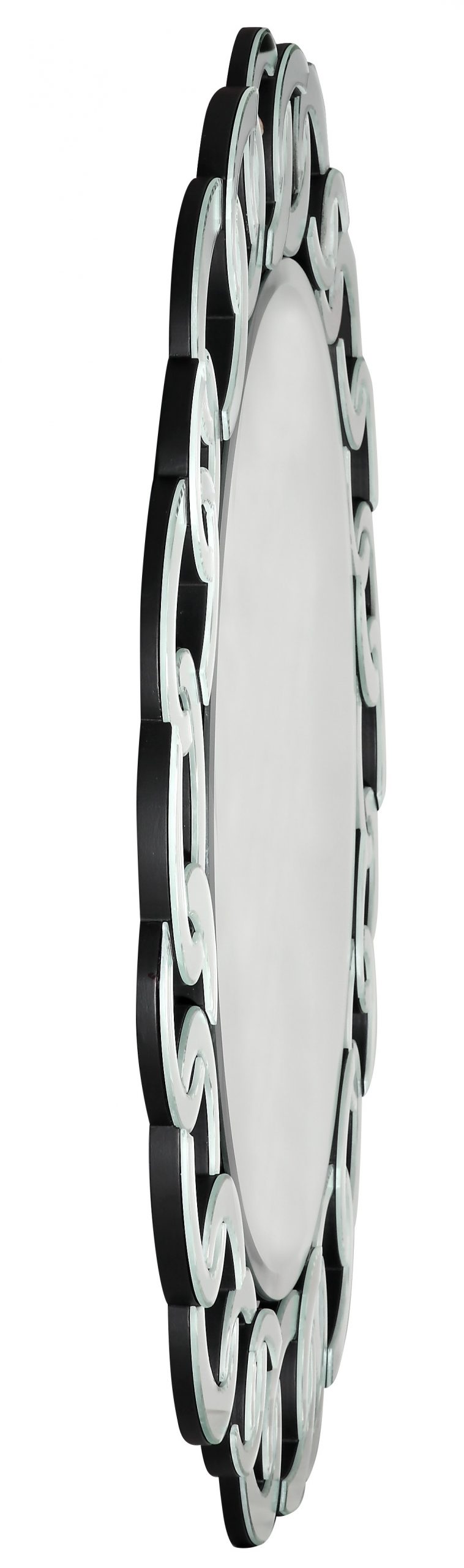 Beautify your space with an ornament that’s original and unique at the same time with this 39-inch clear round glass framed accent mirror. This mirror has a round shape providing the most magnificent reflections of light and color. This frame works nicely with the full-bodied mirror in the middle. The mirror of modern style can also decorate your room and bring brightness to your living space. Its both exceptional and tasteful, and its tough as well. This mirror has the perfect length to place against your wall and will match all aesthetic. 39.4-inch H x 39.4-inch W x 0.9-inch D