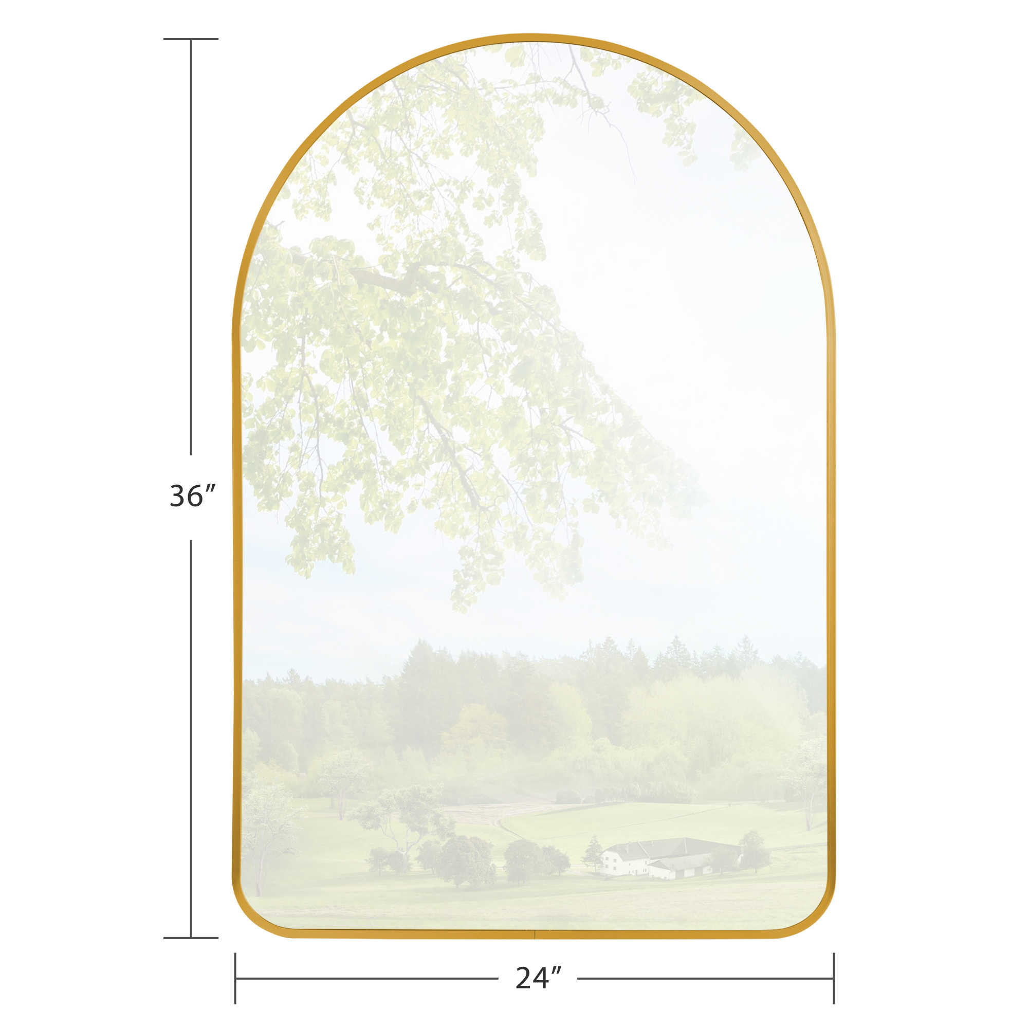 This 39-inch gold arch metal framed bathroom vanity mirror will be the perfect addition to your home if you’re looking to brighten up the space in any room. The frame of this mirror is made from metal and has an elegant gold color to it. This arch shaped mirror is the perfect addition to any bathroom, adding a touch of luxury with elegance. This mirror makes your bathroom glow with its fantastic frame. Its casual style making this the perfect versatile piece for most any decor. Its style is certain to get rid of that trifling feel of boredom, and the quality of its finish and color will grant your place a flavor of fashion. You can mount this mirror above your bathroom sink or vanity. 39.3-inch H x 27.7-inch W x 2.94-inch D