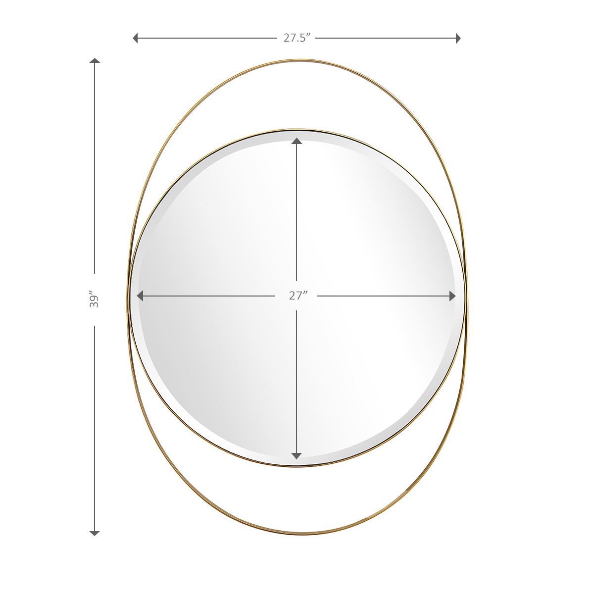 A delectable piece of furniture, this 39-inch gold oval metal framed accent mirror is an embellishment perfect for your rooms. This oval shaped mirror will open up any space you put in piece in. This mirror makes any room glow with its fantastic frame. The modern style of this piece will work great in any room you choose to put it in. Its both exceptional and tasteful, and its tough as well. This unique mirror will look great as part of your existing wall decor or you can use it as a statement piece anywhere in your home. 39-inch H x 27.5-inch W x 0.5-inch D